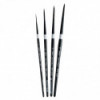 Silver Brush Black Velvet® brushes were created for watercolor artists and skilled hobbyists. Each Black Velvet brush is soft enough to add color without disturbing previous layers but firm enough to lift color when needed. Black Velvet® professional watercolor brushes are expertly crafted with a luxurious blend of the softest squirrel hair and black synthetic fibers. Each brush has a short handle that is finished with sophisticated black lacquer. The Black Velvet® 3007S is a multi-use, LINER brush. Artists prefer to use this brush for THICK or thin lines. From the narrowest passage to tightest controlled lines. Black Velvet® Script liners are made with an extra-long tip. The 3007S is also ideal for perfecting exact details, perfect signature brush series. This set of brushes include 4 different Black Velvet® Script Liner brushes in different sizes.