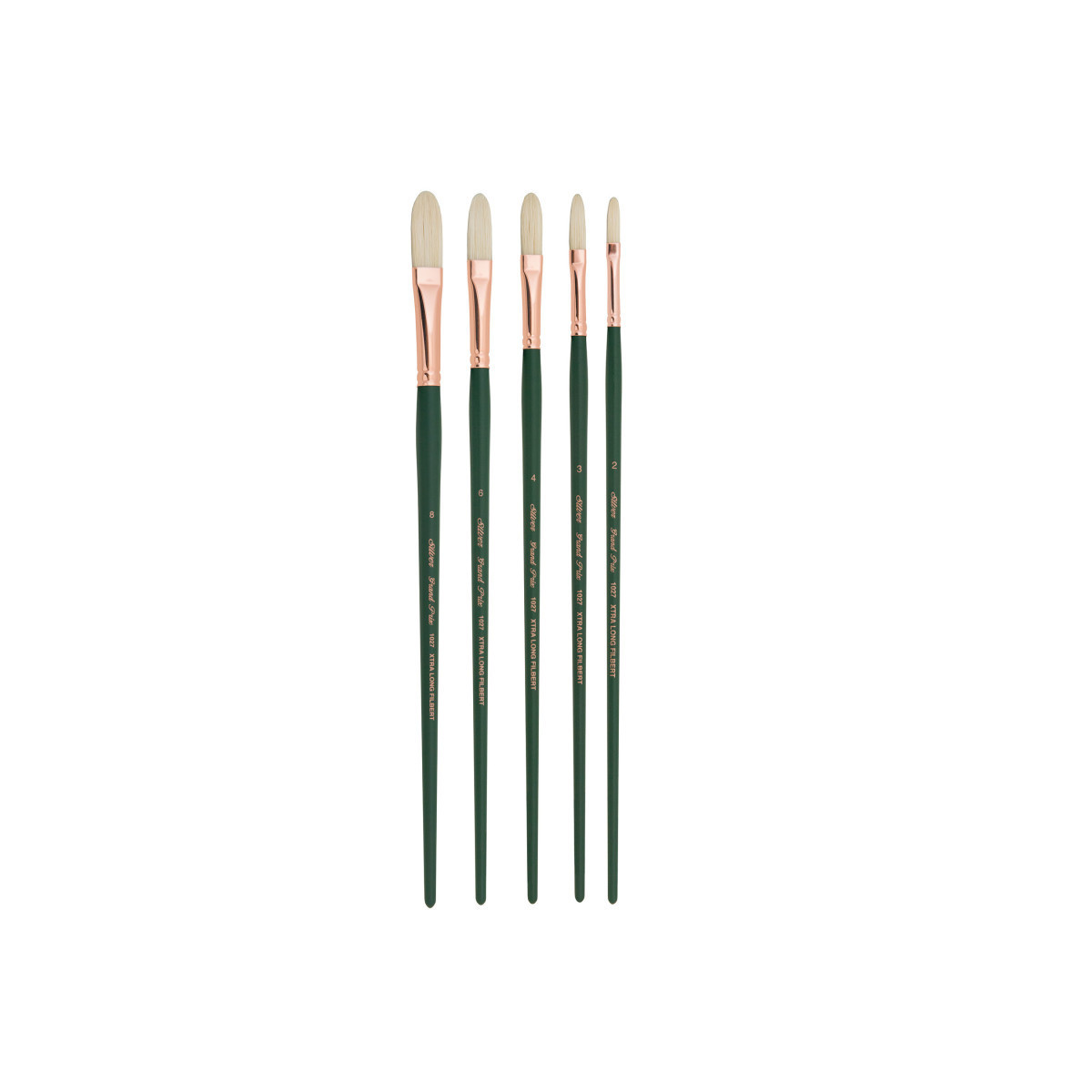 Professional Premium Brushes: This set includes 5 Xtra long filbert brushes in popular sizes for creative talent. Shape of Brush: Xtra Long Filbert Size: #2, #3, #4, #6, #8