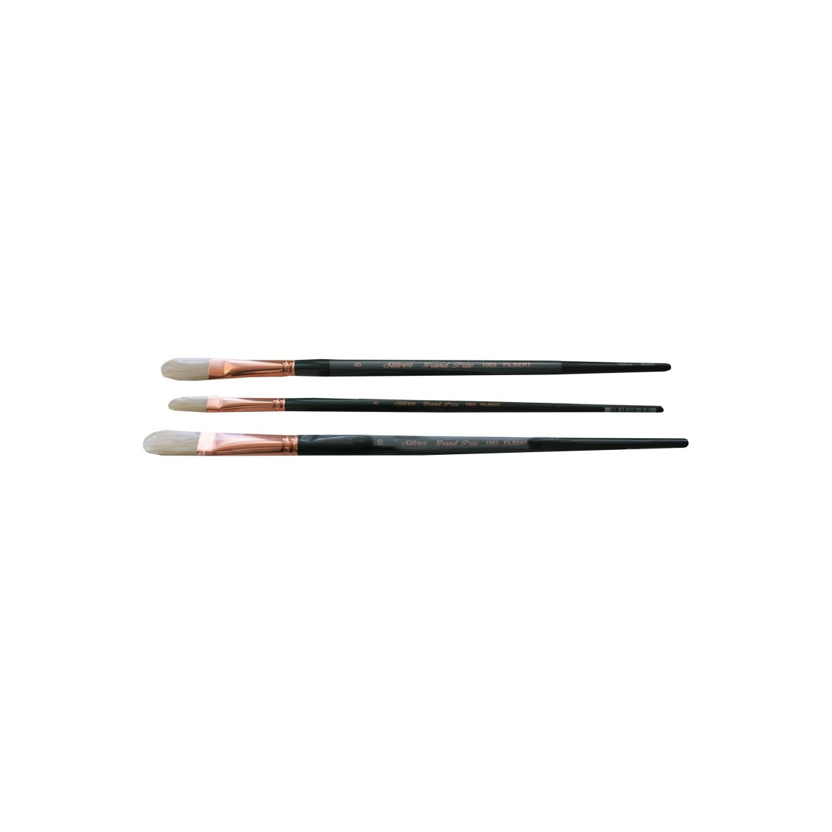 Use® filbert brushes for botanical shapes, details of the human form, and portraiture. Curves, ovals, shaped figure work. Use on any surface and substrate including canvas, paper, furniture, fresco murals, painting panels, walls and so much more. Grand Prix® Fine artist brushes feature multi-diameter bristle filaments that carry heavy bodied acrylic paints effortlessly across your painting surface. Paint Type: Oils, Acrylic, Jar and Heavy Bodied Acrylics, Oils, Gouache, Casein, Varnish. Silver Brush Ltd is owned by a 4th generation art materials family and proud of Silver Brush rich heritage in bringing quality supplies to artists and craftsmen throughout the world. We delight in challenging the status quo and putting Silver Brush experience to work for you because Art is for Everyone!