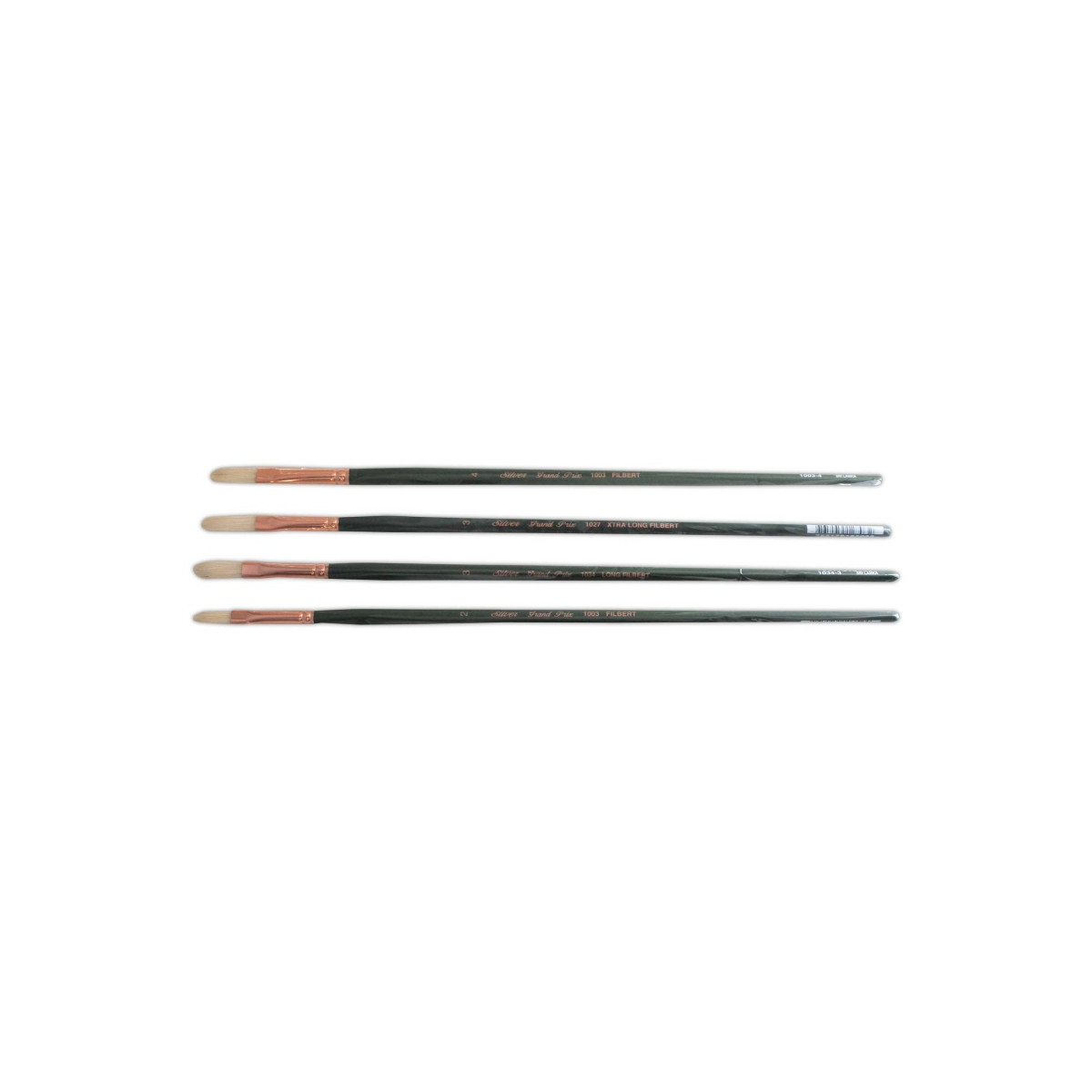 Grand Prix® Xtra Long Filbert shape makes for each reach into paintings. Curated by professional artists and used worldwide. For all and any artwork, portrait, still life, botanical, florals, abstracts, natural settings. Grand Prix® Fine artist brushes feature multi-diameter bristle filaments that carry heavy bodied acrylic paints effortlessly across your painting surface. Use® filbert brushes for botanical shapes, details of the human form, and portraiture. Curves, ovals, shaped figure work. Grand Prix® Long Filbert shape easy reach to canvas, ease of control without stress; for portraiture, still life, figurative, shape, detail. Grand Prix® series is stiff, durable and snappy with fine points for crisp, clean strokes. Grand Prix® series are rugged enough to withstand rough treatment on textured surfaces. Grand Prix® series brushes are handmade by expert artisans who undergo extensive training before they are skilled enough to produce the kind of quality that has become synonymous with Silver Brush Limited. Paint Type: Oils, Acrylic, Jar and Heavy Bodied Acrylics, Oils, Gouache, Casein, Varnish. Silver Brush Ltd is owned by a 4th generation art materials family and proud of Silver Brush rich heritage in bringing quality supplies to artists and craftsmen throughout the world. We delight in challenging the status quo and putting Silver Brush experience to work for you because Art is for Everyone!