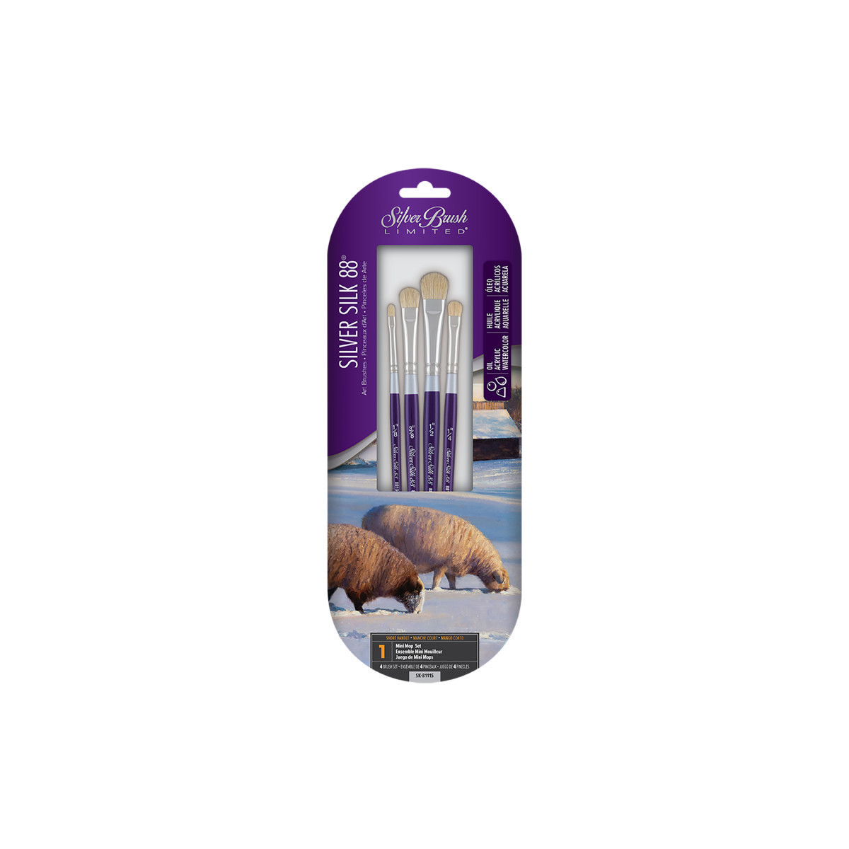 Each brush in Silver Brush Silver Silk line is designed with synthetic fiber tips except for Silver Brush Mini Mop, which is made with dressed white goat hair. Silver Brush durable Silver Silk brushes exhibit maximum color absorbency and control. Silver Brush Silver Silk professional artist brushes are made with superior Silver Taklon synthetic filament or white goat hair and display exceptional wear resistance. Each artist painting brush has a handle that is sophisticatedly finished with lacquer. Includes 1 1/8" Oval Mini Mop, 1 1/4" Oval Mini Mop, 1 3/8" Oval Mini Mop, and 1 1/2" Oval Mini Mop. Each Silver Silk goat hair or synthetic brush can be paired with fluid and interference acrylic or gouache. These paintbrushes also work well with watercolor, inks, dyes, and heavy body paint, proving that they are extremely versatile. Enjoy the controlled, colorful strokes. Silver Brush Ltd is owned by a 4th generation art materials family and proud of Silver Brush rich heritage in bringing quality supplies to artists and craftsmen throughout the world. We delight in challenging the status quo and putting Silver Brush experience to work for you because Art is for Everyone!