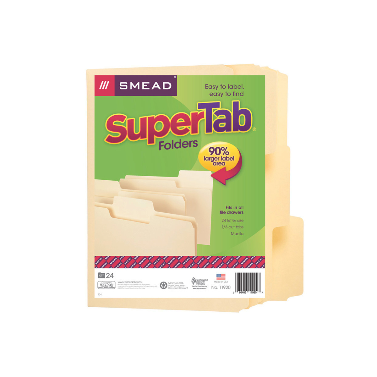 Find critical files fast with SuperTab file folders. Get nearly double the labeling area of standard file folders, so you can write larger or use more lines of description. These sturdy, durable file folders fit any vertical or lateral filing system. Measures 11-5/8" W x 9-1/2" H Overall, 8-5/8" H Body. 1/3-cut tab, assorted positions. Each pack includes 24 folders.