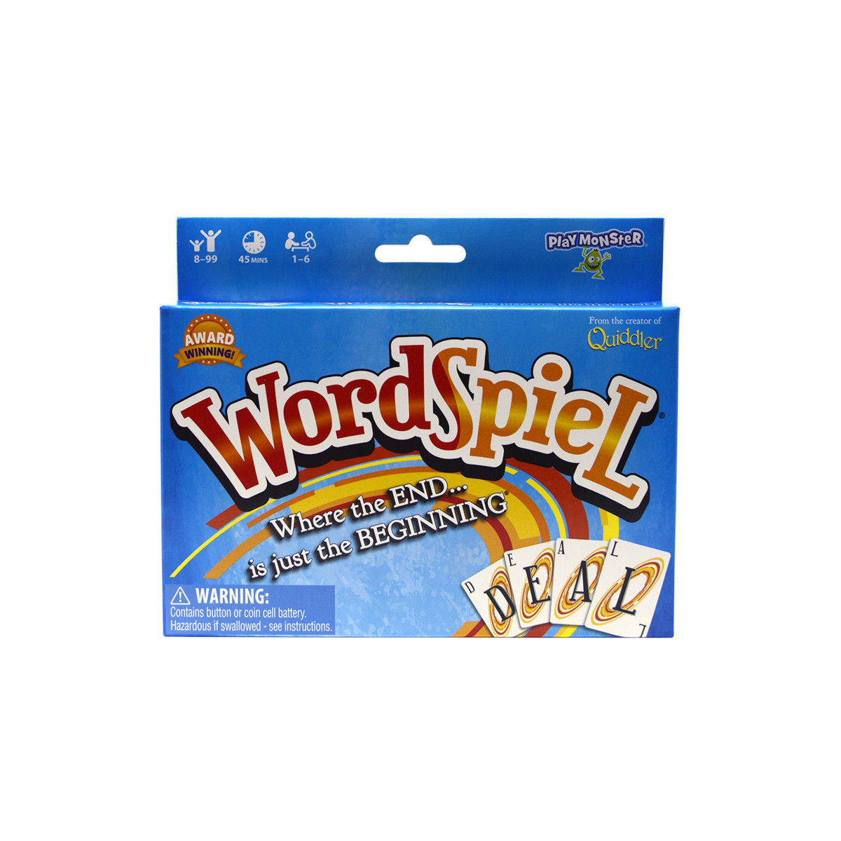 Use your words wisely and be the first to get rid of your cards! Each word spins off the last, so the game will never be the same twice! During your turn, simply start your word with the last card played. Just like the name, WordSpiel (“Spiel” uses the “S” from “Words”). Get it?! Use the timer or take your time, just be sure to put your best word forward! WordSpiel is a simple, yet dynamic card game that everyone enjoys!