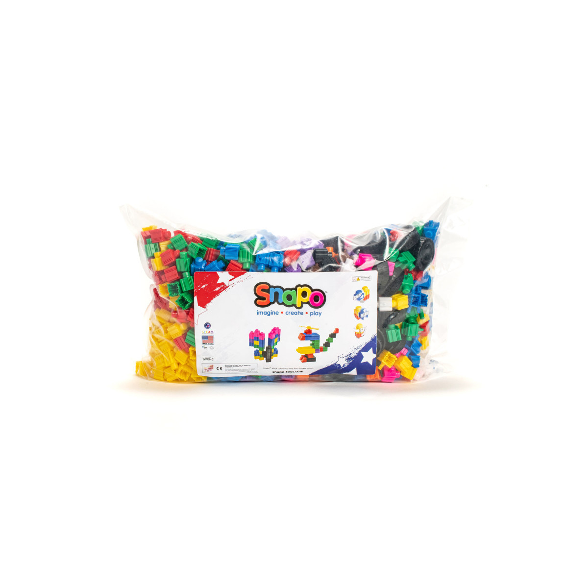 What sets Snapo apart (besides being 100% MADE IN USA) is its commitment to sustainability. Snapo blocks are 100% recyclable, the company recycles its own clean, FDA Food Grade material, ensuring nearly zero waste production. Moreover, Snapo blocks are BPA-free, non-magnetic, washable, and have undergone rigorous safety testing, meeting all ASTM Safety Standards. This dedication to safety and eco-friendliness makes Snapo a choice that parents can trust. This kit includes 1100 pieces: Standard Blocks, Wheels, Propellors, Specialty Blocks (Axels, slopes, etc.).