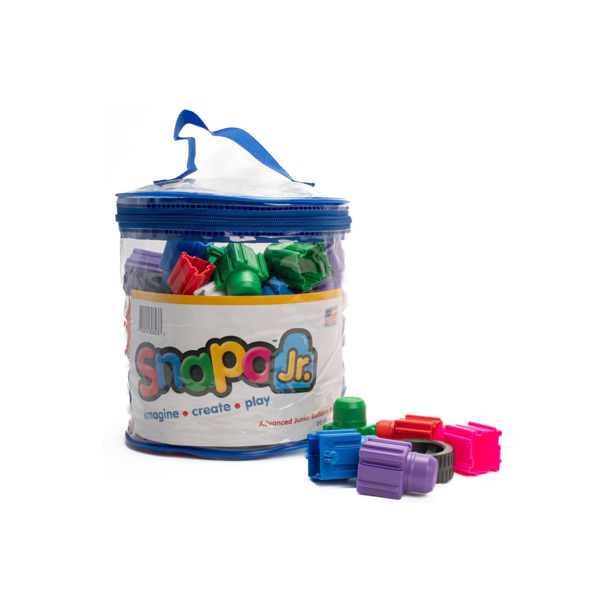 What sets Snapo apart (besides being 100% MADE IN USA) is its commitment to sustainability. Snapo blocks are 100% recyclable, the company recycles its own clean, FDA Food Grade material, ensuring nearly zero waste production. Moreover, Snapo blocks are BPA-free, non-magnetic, washable, and have undergone rigorous safety testing, meeting all ASTM Safety Standards. This dedication to safety and eco-friendliness makes Snapo a choice that parents can trust. This kit includes 80 pieces: Standard Blocks, Wheels, Propellors, Specialty Blocks (Axels, slopes, etc.).