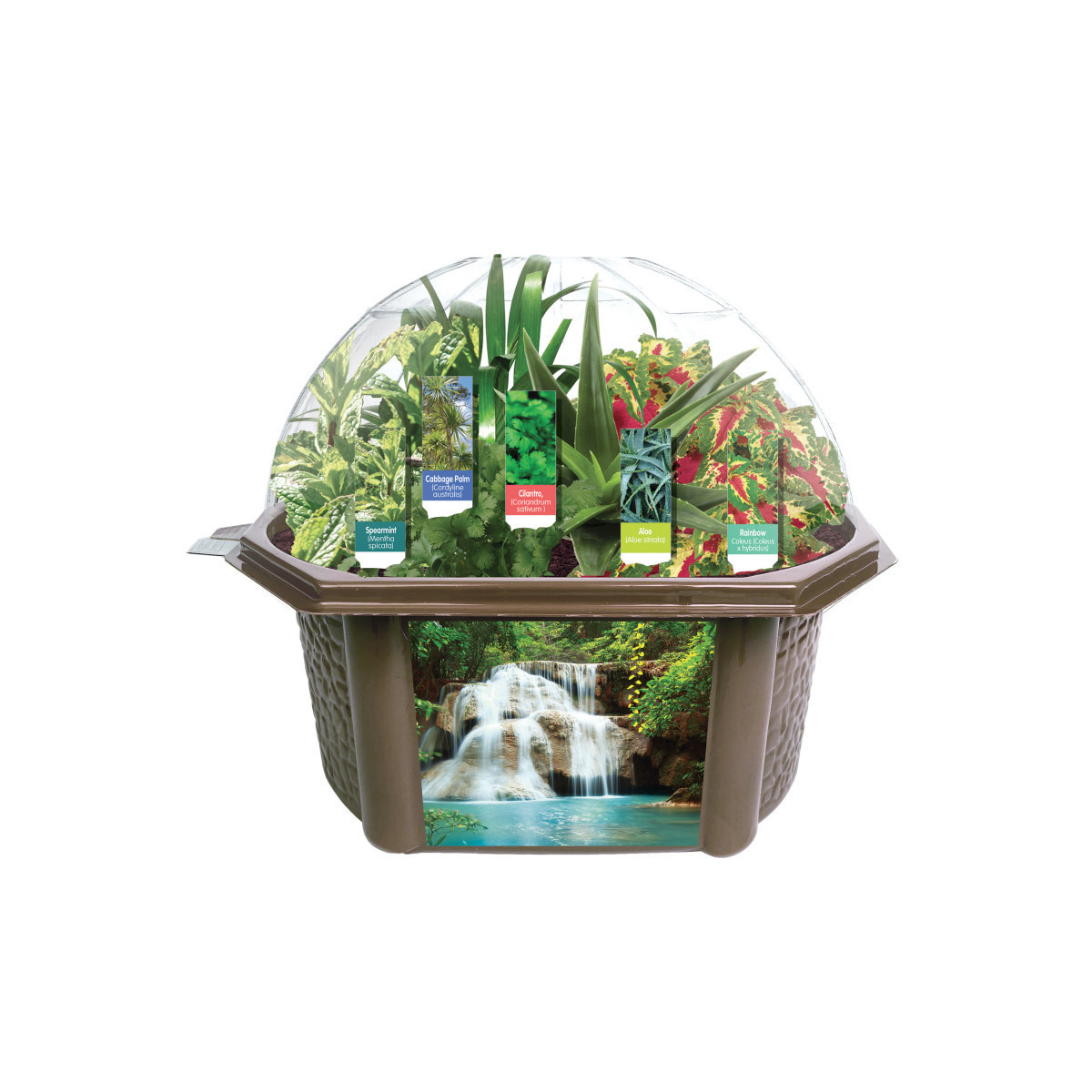 Sprout seeds and nurture plants in our Sensory Eco-Biosphere. It is designed to facilitate the best possible result with side air ventilation, a drainage basin, a large viewing pane and more! Grow plants for each of the 5 senses. Each kit comes with the Terrarium, 5 Color Seed Packs, Growing Medium, Plant Stakes, a Decal and Growing Instructions.