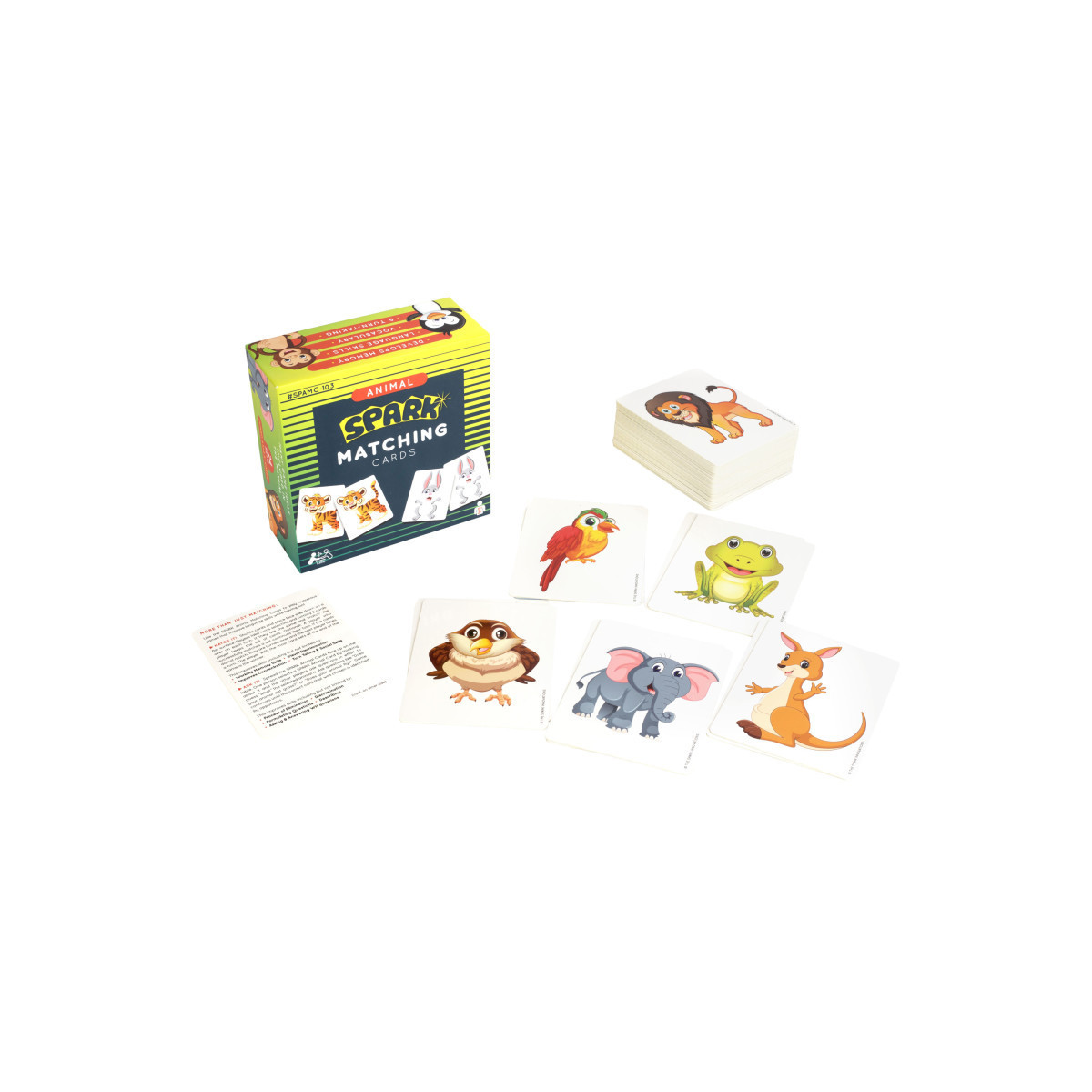 CLEAR INSTRUCTION CARD with 5 Educational Learning Game Ideas and uses for the animal matching cards. Use them to play Old Maid, Guess Who, Go Fish, Headbands, Memory. Can be played in less than 15 minutes with 1-6 players
