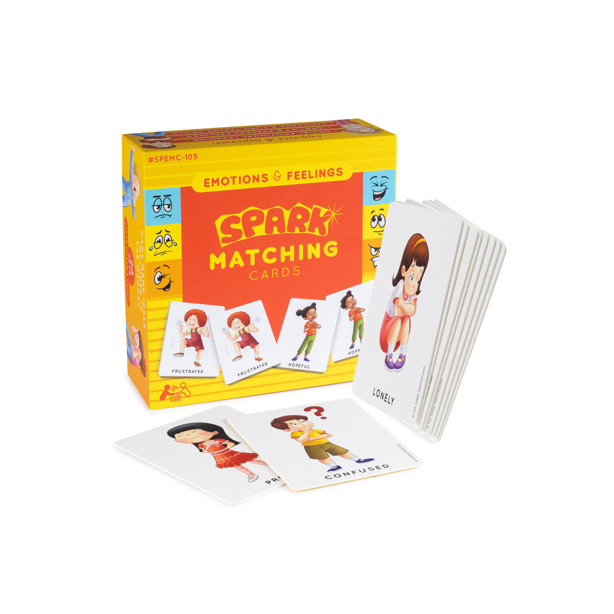 Emotions and Feelings Matching cards are large durable picture cards with bright, clear and kid friendly illustrations of characters and emotions. The Cards can be used to play basic memory and matching and improve vocabulary skills of children. These cards can be used to practice names of emotions, help teach about emotions and feelings and increase exposure to various facial expressions and body language. Cards included- Angry, Bored, Calm, confused, disgusted, embarrassed, excited, frustrated, grateful, happy, hopeful, lonely, nervous, proud, sad, scared, shocked, shy, sick, silly, surprised, tired, upset, worried. The cards are very durable with a laminated finish and are made to last.