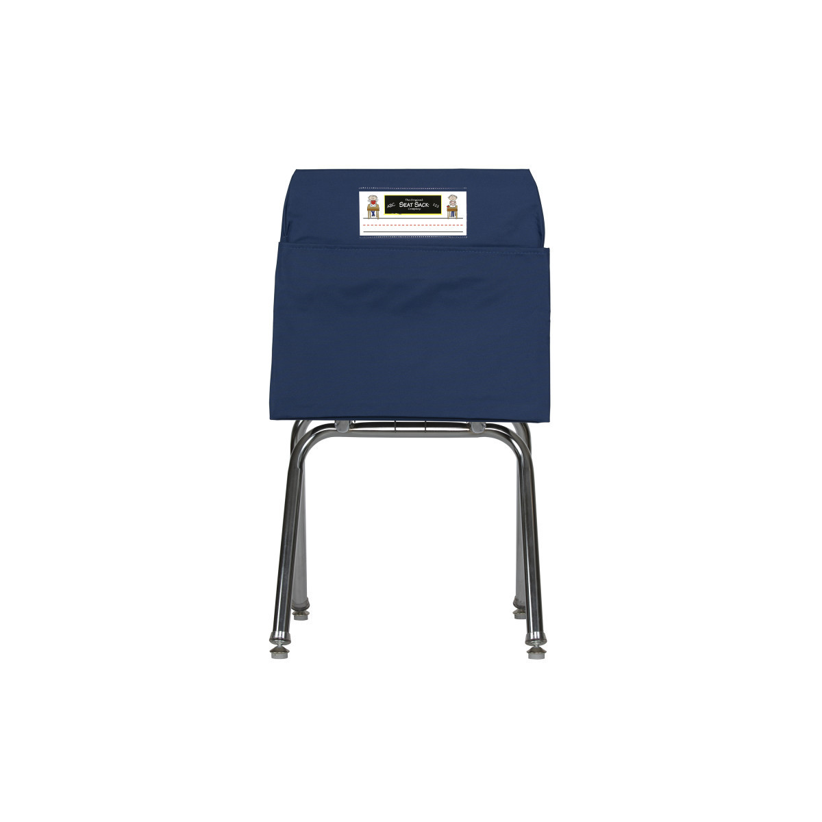 Seat Sack offers a Large, 17-inch, blue storage chair pocket for classroom organization that features a durable laminated fabric that is certified flame-resistant and machine washable. The Seat Sack student organizer has a 10-inch-deep pocket and a 2-inch gusset that offers ample storage space to accommodate tech devices, books, papers, school supplies and more. Fits chairs that measure 14 inches or less along the very top and widen to 17" at the pocket. Perfect for classroom storage, teaching vital organization skills and keeping the classroom materials managed.