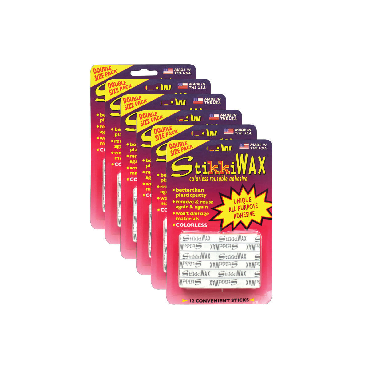 StikkiWAX™ Bars/Sticks are perfect for temporary and permanent holding, hanging, stabilizing and more! Either use the whole wax bar or cut to length. The colorless formula won't stain surfaces or materials and can be reused again and again. Each pack includes 12 all-purpose adhesive sticks. Sold as 6 packs, 72 sticks total.