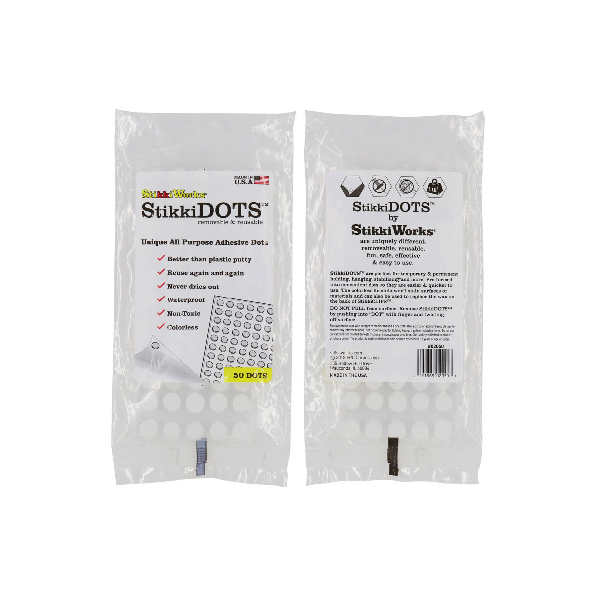 StikkiDOTS™ are perfect for temporary and permanent holding, hanging, stabilizing and more! Pre-formed into convenient dots so they are easier and quicker to use. The colorless formula won't stain surfaces or materials and can be used to replace the wax on the back of StikkiCLIPS. StikkiDOTS work better than plastic putty and can be reused again and again. Each pack includes 50 all-purpose adhesive dots.