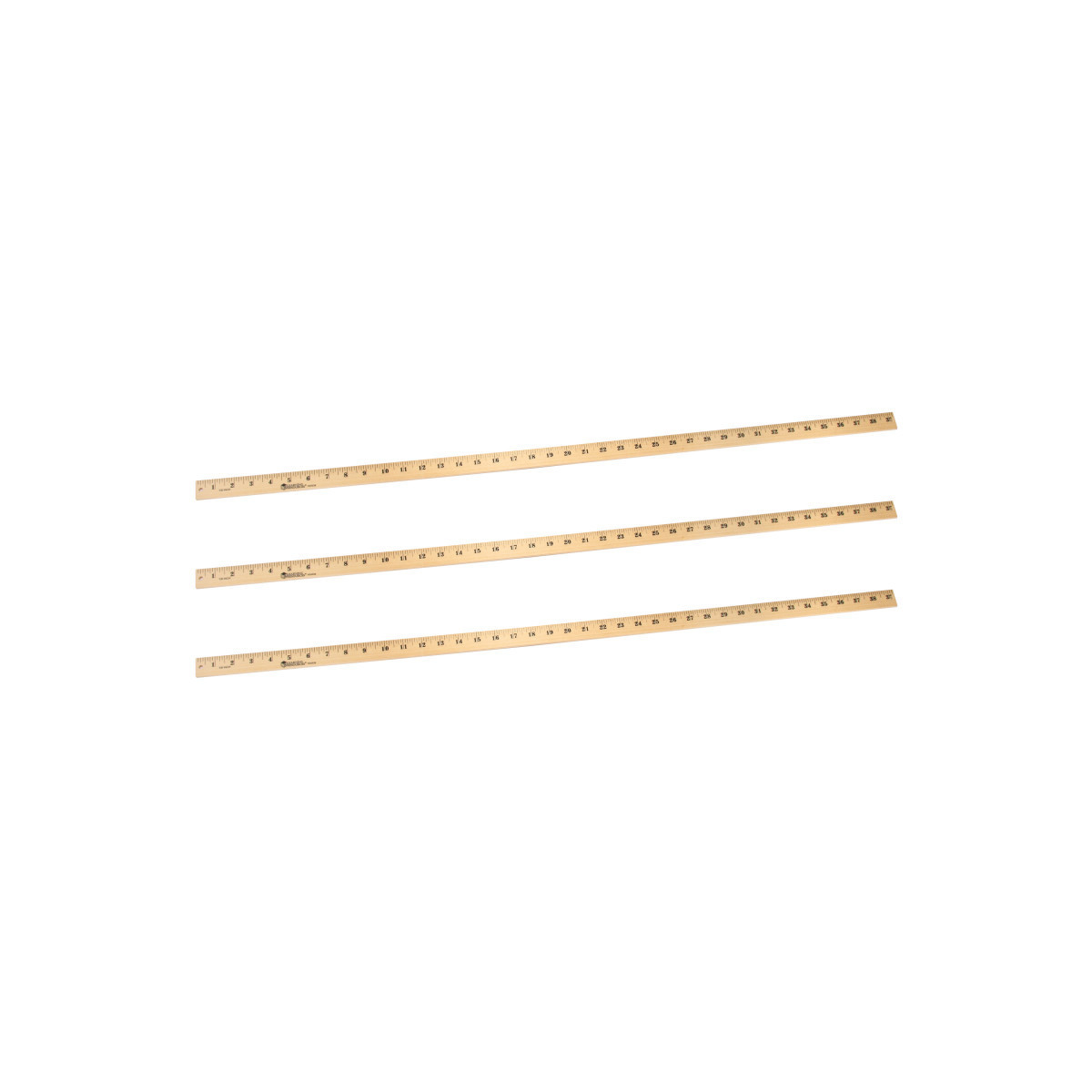 Students can compare U.S. customary and metric scales using these clear-coated Wooden Meter Sticks with easy-to-read black markings. U.S. customary side features inches in 1/8" increments. Metric side features both millimeters and centimeters. Sticks measure exactly 1 meter long. Plain ends, 7 mm thick. Pack of 3.