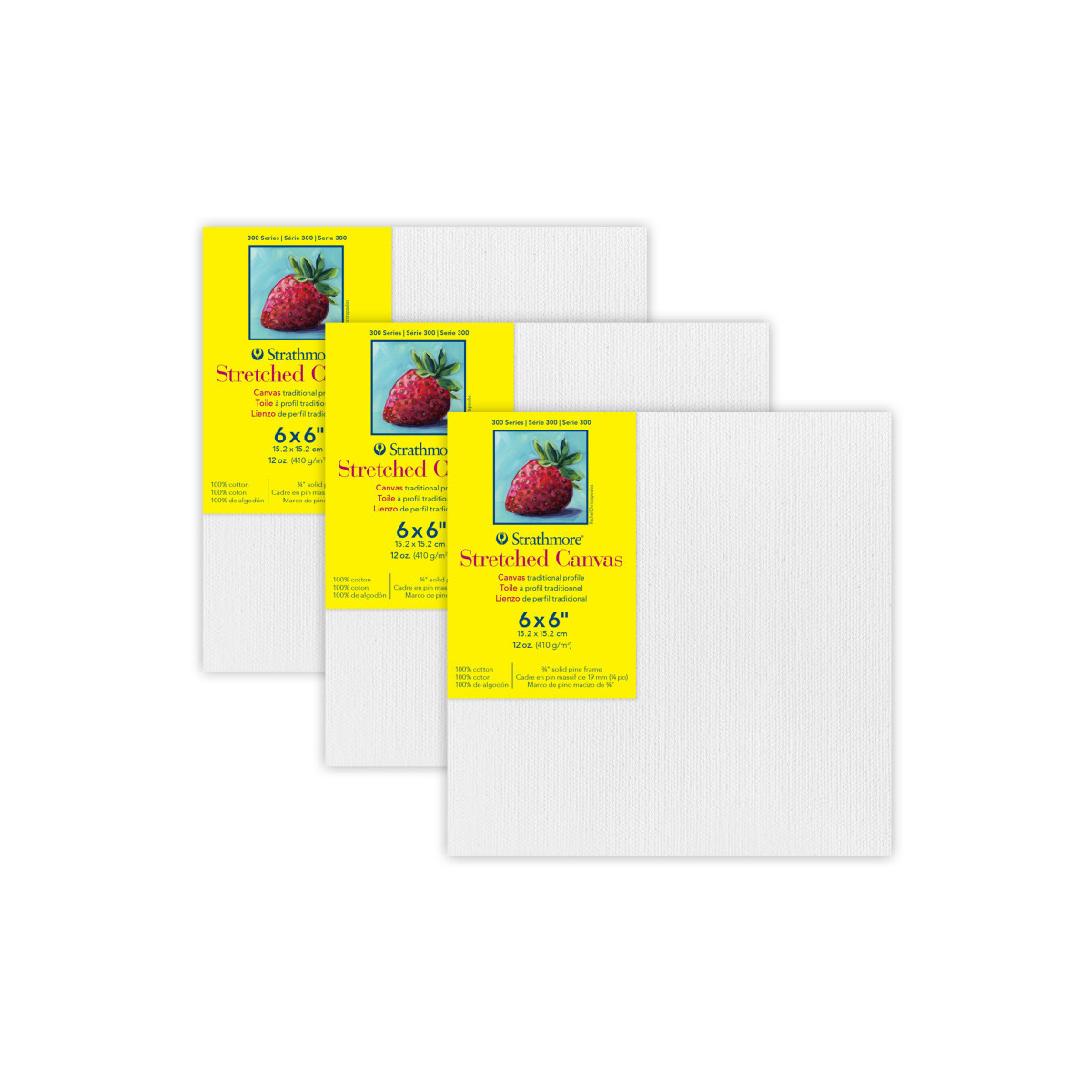 Strathmore 300 Series Traditional Stretched Canvas, 6x6 inch, Pack of 3