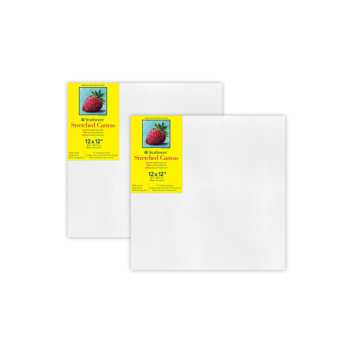 300 Series Stretched Canvas from Strathmore is the ideal painting surface for artists of all skill levels. Made from 100% cotton triple primed canvas and with a solid pine wood frame construction, this canvas can withstand heavy applications like collage, impasto, screen printing, and paint pouring without the need to re-stretch the canvas. All canvases are supreme surfaces for acrylic paints, oil paints, water-mixable oil paints, acrylic inks, permanent inks, mixed media, paint pouring, epoxy, spray paint, acrylic markers, texture mediums, stencil work and any other large profile art expression. Apply paint with a brush, wedge, or straight from the tube. The slim frame provides a modern streamlined look, saving space while making artwork ready to showcase. Explore your creativity today with Strathmore 300 Series Canvas! Sold as a pack of 2.