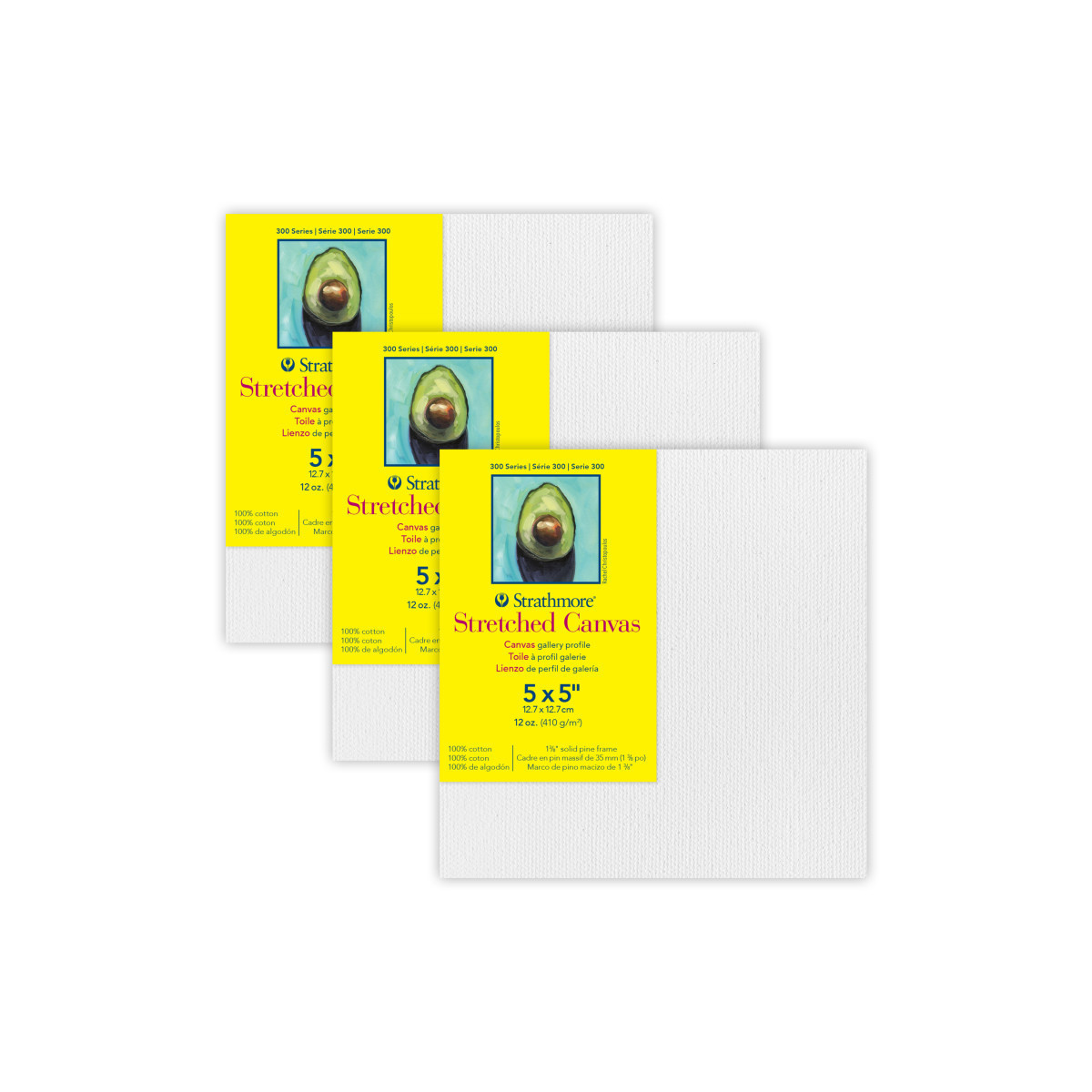 300 Series Stretched Canvas from Strathmore is the ideal painting surface for artists of all skill levels. Made from 100% cotton triple primed canvas and with a solid pine wood frame construction, this canvas can withstand heavy applications like collage, impasto, screen printing, and paint pouring without the need to re-stretch the canvas. The slim frame provides a modern streamlined look, saving space while making artwork ready to showcase. All canvases are supreme surfaces for acrylic paints, oil paints, water-mixable oil paints, acrylic inks, permanent inks, mixed media, paint pouring, epoxy, spray paint, acrylic markers, texture mediums, stencil work and any other large profile art expression. Apply paint with a brush, wedge, or straight from the tube.