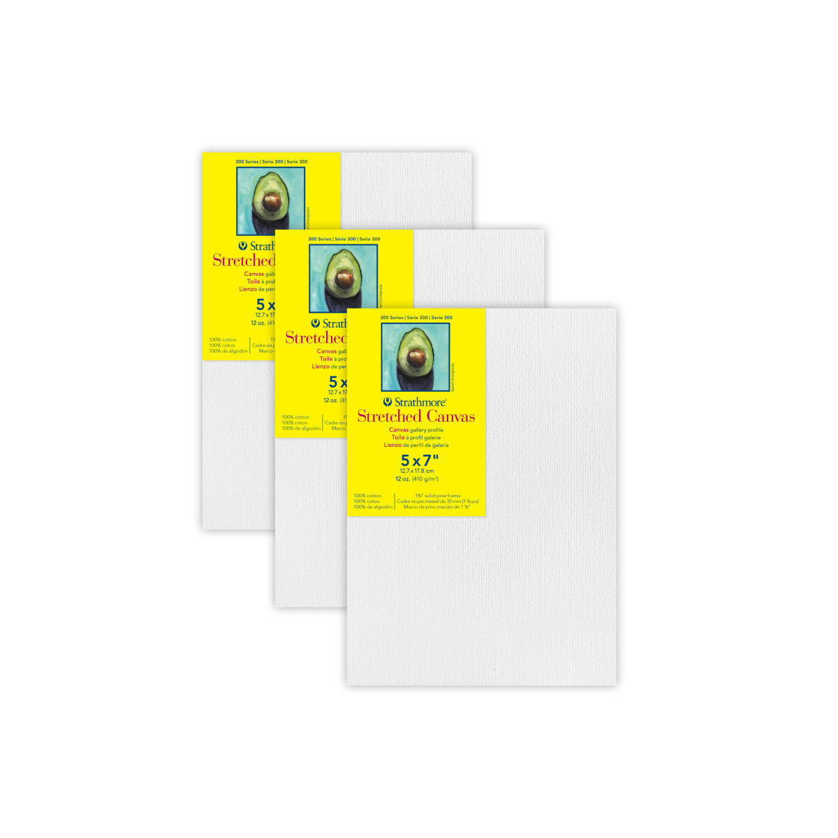 300 Series Stretched Canvas from Strathmore is the ideal painting surface for artists of all skill levels. Made from 100% cotton triple primed canvas and with a solid pine wood frame construction, this canvas can withstand heavy applications like collage, impasto, screen printing, and paint pouring without the need to re-stretch the canvas. The slim frame provides a modern streamlined look, saving space while making artwork ready to showcase. All canvases are supreme surfaces for acrylic paints, oil paints, water-mixable oil paints, acrylic inks, permanent inks, mixed media, paint pouring, epoxy, spray paint, acrylic markers, texture mediums, stencil work and any other large profile art expression. Apply paint with a brush, wedge, or straight from the tube. Explore your creativity today with Strathmore 300 Series Canvas! Sold as a pack of 3.
