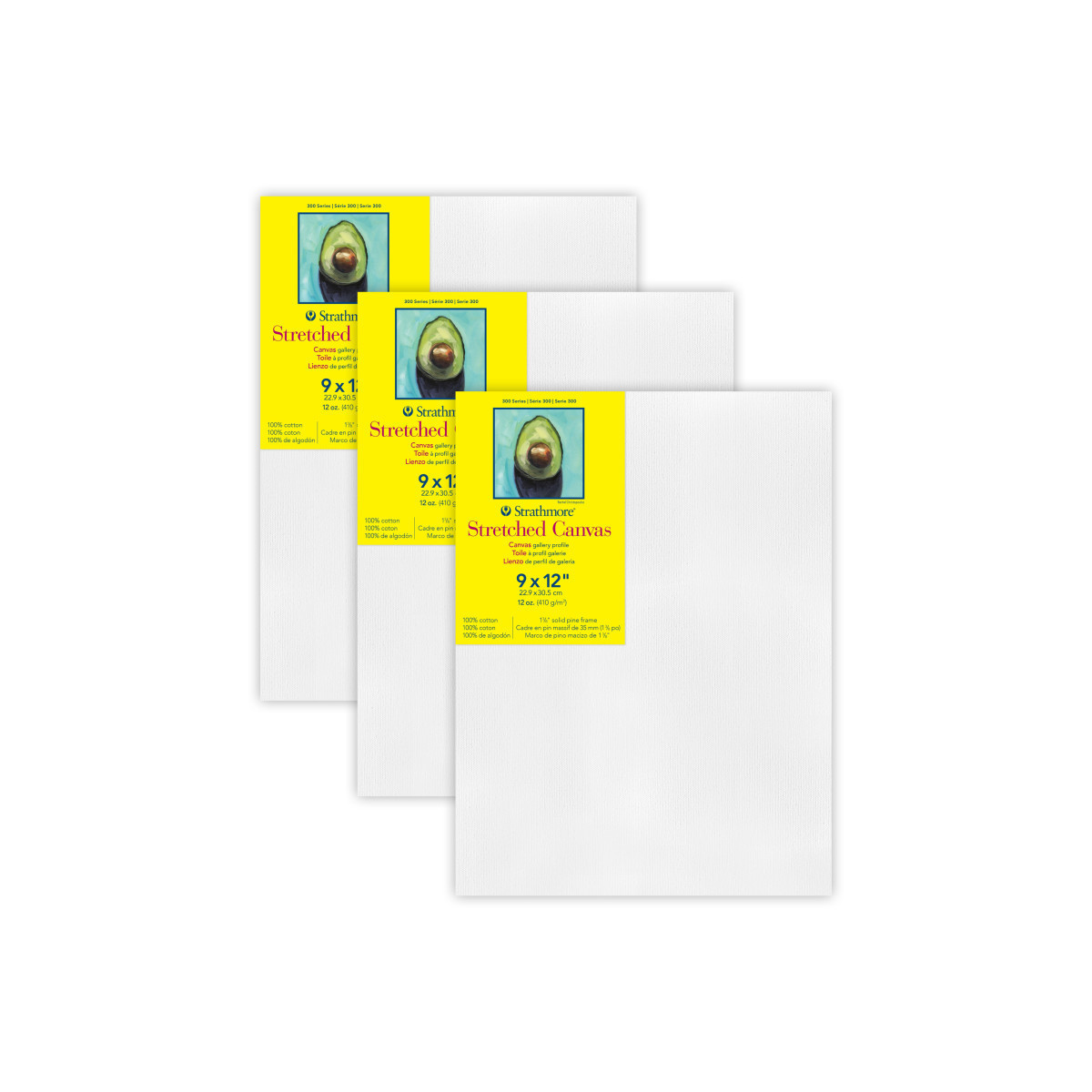 Strathmore 300 Series Gallery Stretched Canvas, 9x12 inch, Pack of 3