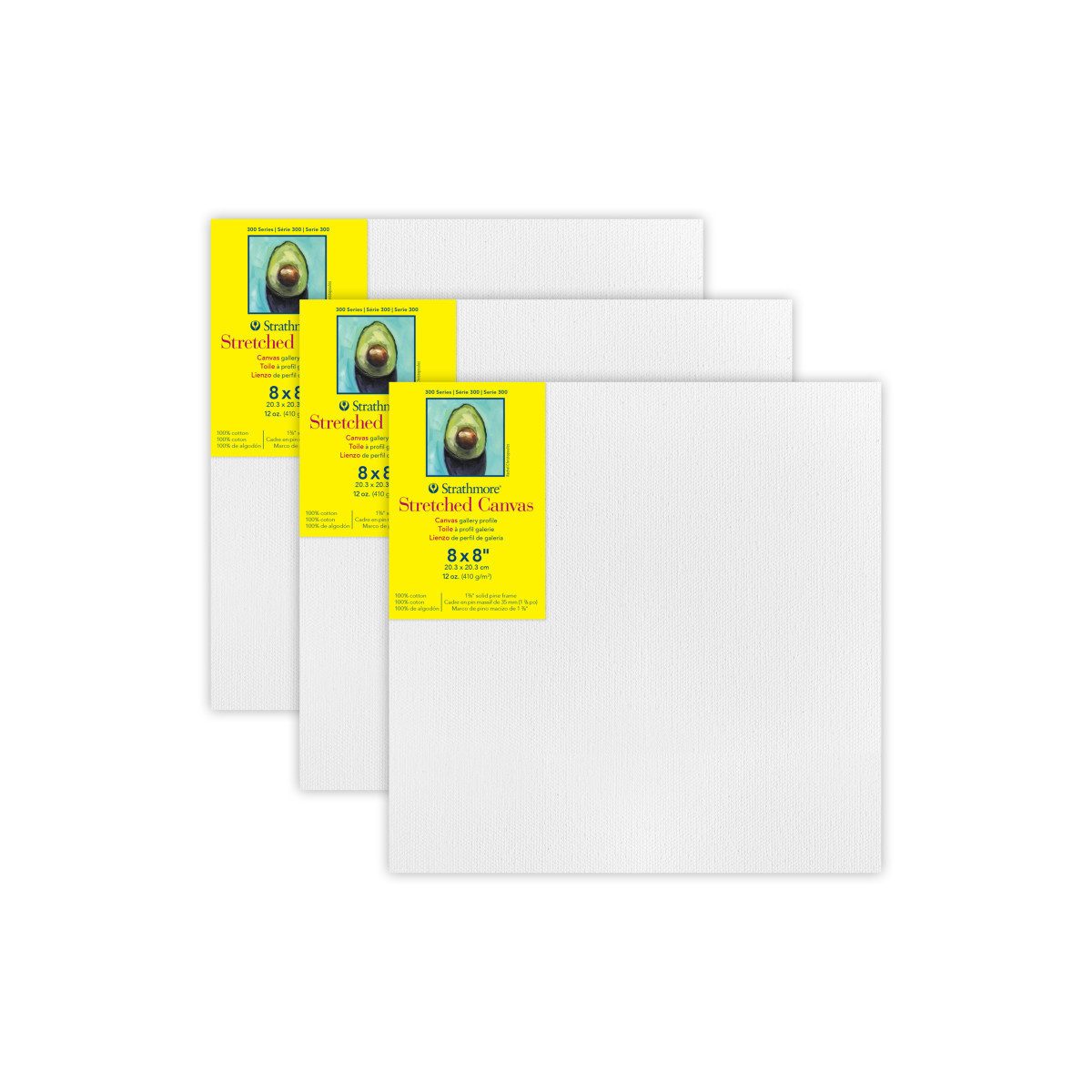Strathmore 300 Series Gallery Stretched Canvas, 8x8 inch, Pack of 3