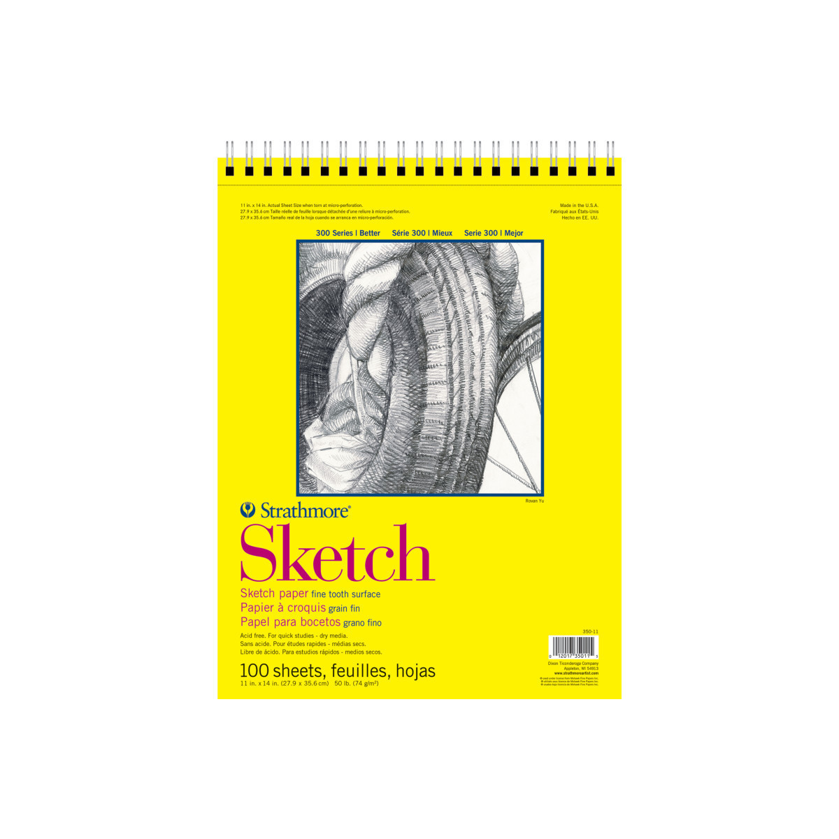 Strathmore 300 Series Sketch Pad, Side Wire Binding, 100 Sheets, 11x14 inch