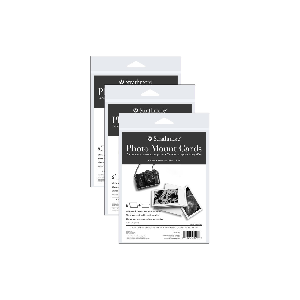 Introducing Strathmore Photo Mount Cards, the perfect way to showcase your special moments & cherished images. These cards are designed to beautifully display your photos & create lasting memories. Available with both decorative & classic borders, you can choose a style that suits your aesthetic preferences. Each card includes double-stick tabs, making it easy to securely mount your photos up to a size of 4x6 inches. With Strathmore Photo Mount Cards, you can transform your photographs into personalized keepsakes that can be shared & cherished for years to come. The history of Strathmore Paper Company began on St. Patrick's Day in 1892 when its founder, Horace Moses, opened the Mittineague Paper Mill in West Springfield, MA. Strathmore has been a leading supplier of fine art papers for 130 years & founded with the belief that better paper makes better art. Strathmore provides artists of all levels with one of the widest ranges of quality surfaces for producing beautiful works of art, no matter the choice of medium. Listening to the needs of artists & providing inspiration, education, & innovating new products is at the core of what matters to Strathmore. Each pack includes 6 cards with 6 envelopes. Sold as 3 packs for a total of 18 cards with 18 envelopes.