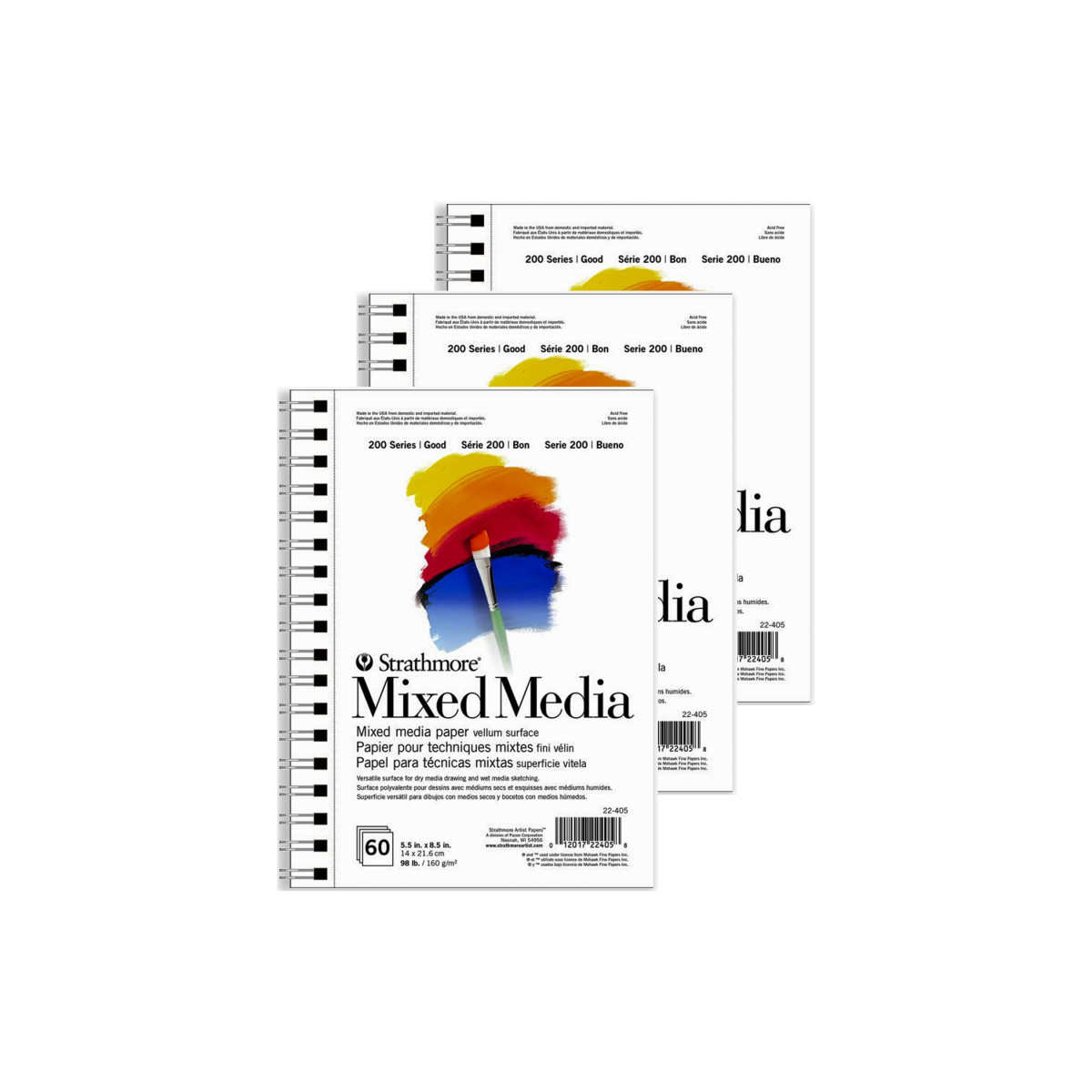 Mixed Media paper for art class, craft nights & home school! Teach your kids & teens how to expand their drawing skills with a versatile, medium weight, white surface made specifically to handle layers of watercolor paint, marker, ink, pencil, pastel & pen. Explore the next level of the creative process with imaginative projects, navigating portrait & illustrative techniques, capturing on-location cityscapes & practicing accurate proportions & perspectives. The history of Strathmore Paper Company began on St. Patrick's Day in 1892 when its founder, Horace Moses, opened the Mittineague Paper Mill in West Springfield, MA. Strathmore has been a leading supplier of fine art papers for 130 years & founded with the belief that better paper makes better art. Strathmore provides artists of all levels with one of the widest ranges of quality surfaces for producing beautiful works of art, no matter the choice of medium. Listening to the needs of artists & providing inspiration, education, & innovating new products is at the core of what matters to Strathmore. The Strathmore 200 Series provides art students & intermediate hobbyists a range of good quality paper for quick studies, technical practice & final pieces in art class or at home. Including a wide variety of surface types, artists working with watercolor paint, acrylic paint, oil paint, pastel, colored pencil, charcoal, marker, pen, ink & more have a curated pad customized for their needs. Trusted by art teachers & affordable for parents & students, the 200 Series is the best way to help build confidence in novice artists! Sold as a pack of 3.