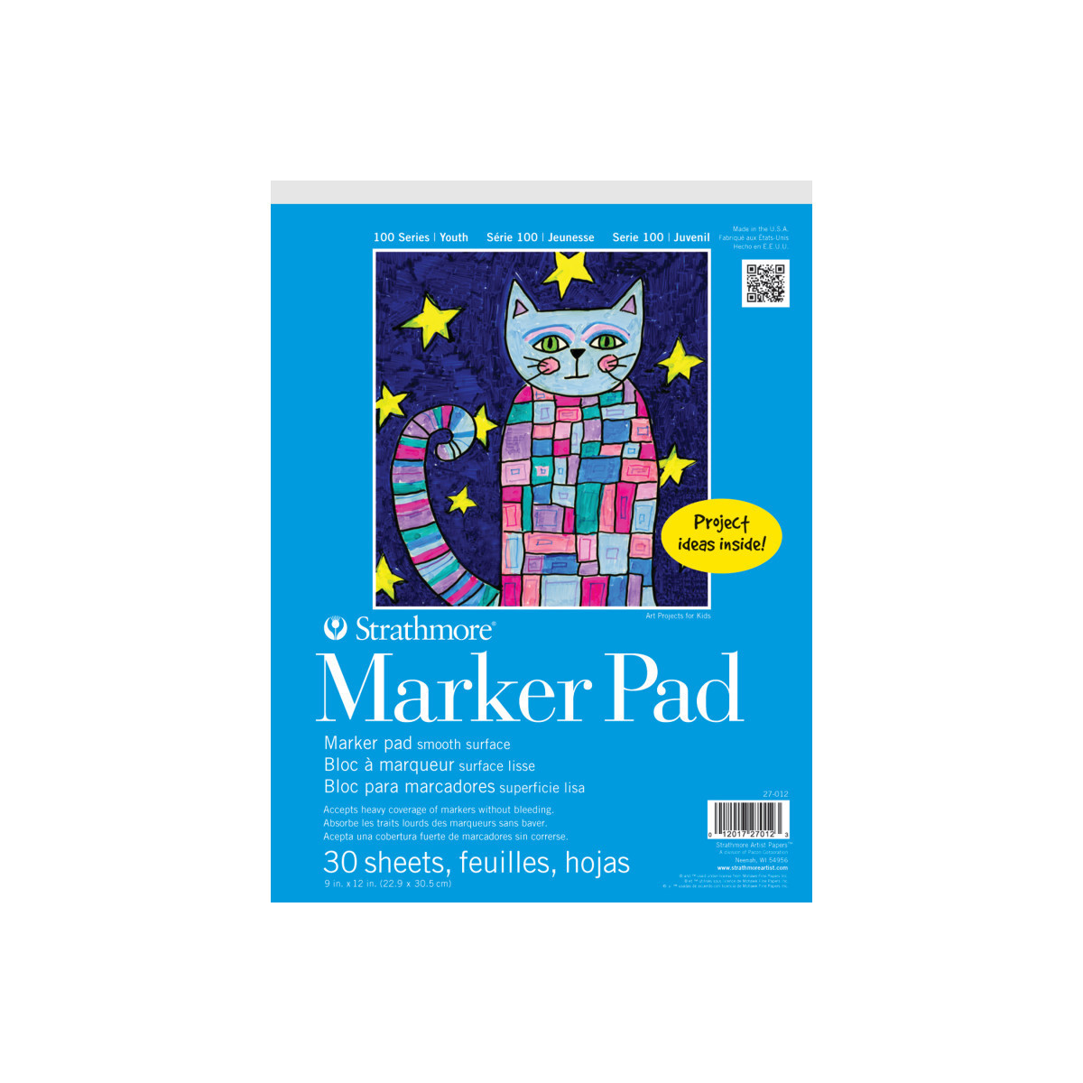 Marker paper for art class, daycare, craft nights & home school! Teach your kids the basics of drawing with a smooth, white paper made specifically for felt-tip markers—paper prevents bleeding & feathering so marker lines are crisp & clean. Explore the creative process with imaginative projects, investigate how a child sees the world around them & lay the ground work of shapes, light & shadow, color, outlines & proportions. The history of Strathmore Paper Company began on St. Patrick's Day in 1892 when its founder, Horace Moses, opened the Mittineague Paper Mill in West Springfield, MA. Strathmore has been a leading supplier of fine art papers for 130 years & founded with the belief that better paper makes better art. Strathmore provides artists of all levels with one of the widest ranges of quality surfaces for producing beautiful works of art, no matter the choice of medium. Listening to the needs of artists & providing inspiration, education, & innovating new products is at the core of what matters to Strathmore. Strathmore Paper Made for Kids! The 100 Series was created to nurture talent & ignite a lifelong love of art by providing artist quality materials at a young age. Designed for ages 5 & up, the paper types & features have been selected to enhance the creative process. Inspirational project ideas are included on the inside front cover of specially marked items.