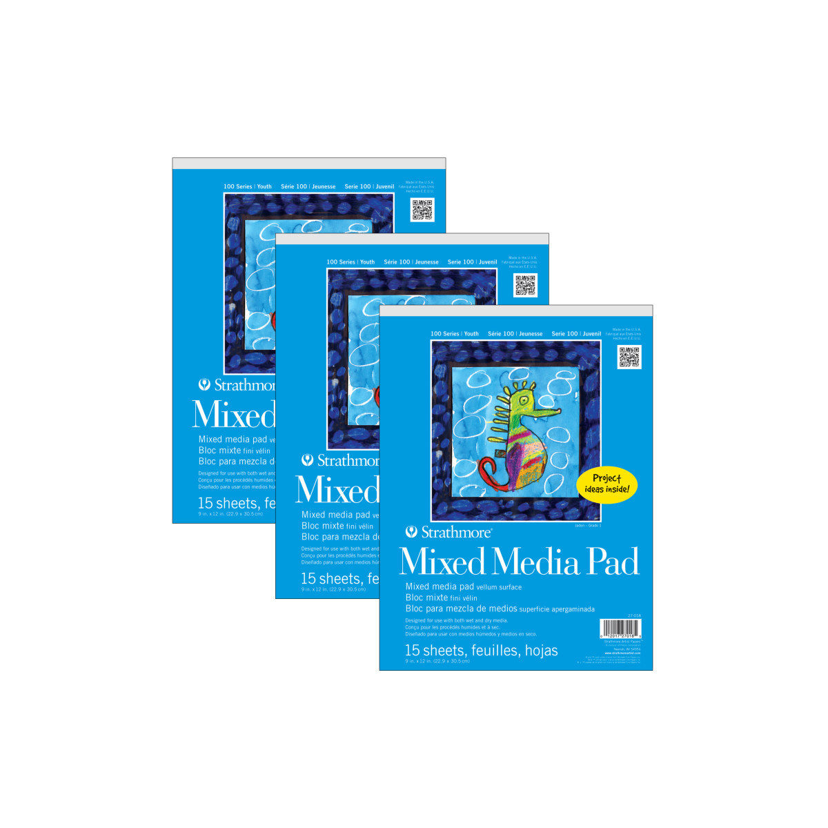 Mixed media paper for art class, daycare, craft nights & home school! Teach your kids the basics of drawing & combining different materials with a textured surface designed to manage layers of watercolor paint, colored pencil, marker & pen. Explore the creative process with imaginative projects, investigate how a child sees the world around them & lay the ground work of shapes, light & shadow, color, outlines & proportions. The history of Strathmore Paper Company began on St. Patrick's Day in 1892 when its founder, Horace Moses, opened the Mittineague Paper Mill in West Springfield, MA. Strathmore has been a leading supplier of fine art papers for 130 years & founded with the belief that better paper makes better art. Strathmore provides artists of all levels with one of the widest ranges of quality surfaces for producing beautiful works of art, no matter the choice of medium. Listening to the needs of artists & providing inspiration, education, & innovating new products is at the core of what matters to Strathmore. Strathmore Paper Made for Kids! The 100 Series was created to nurture talent & ignite a lifelong love of art by providing artist quality materials at a young age. Designed for ages 5 & up, the paper types & features have been selected to enhance the creative process. Inspirational project ideas are included on the inside front cover of specially marked items. Sold as a pack of 3.
