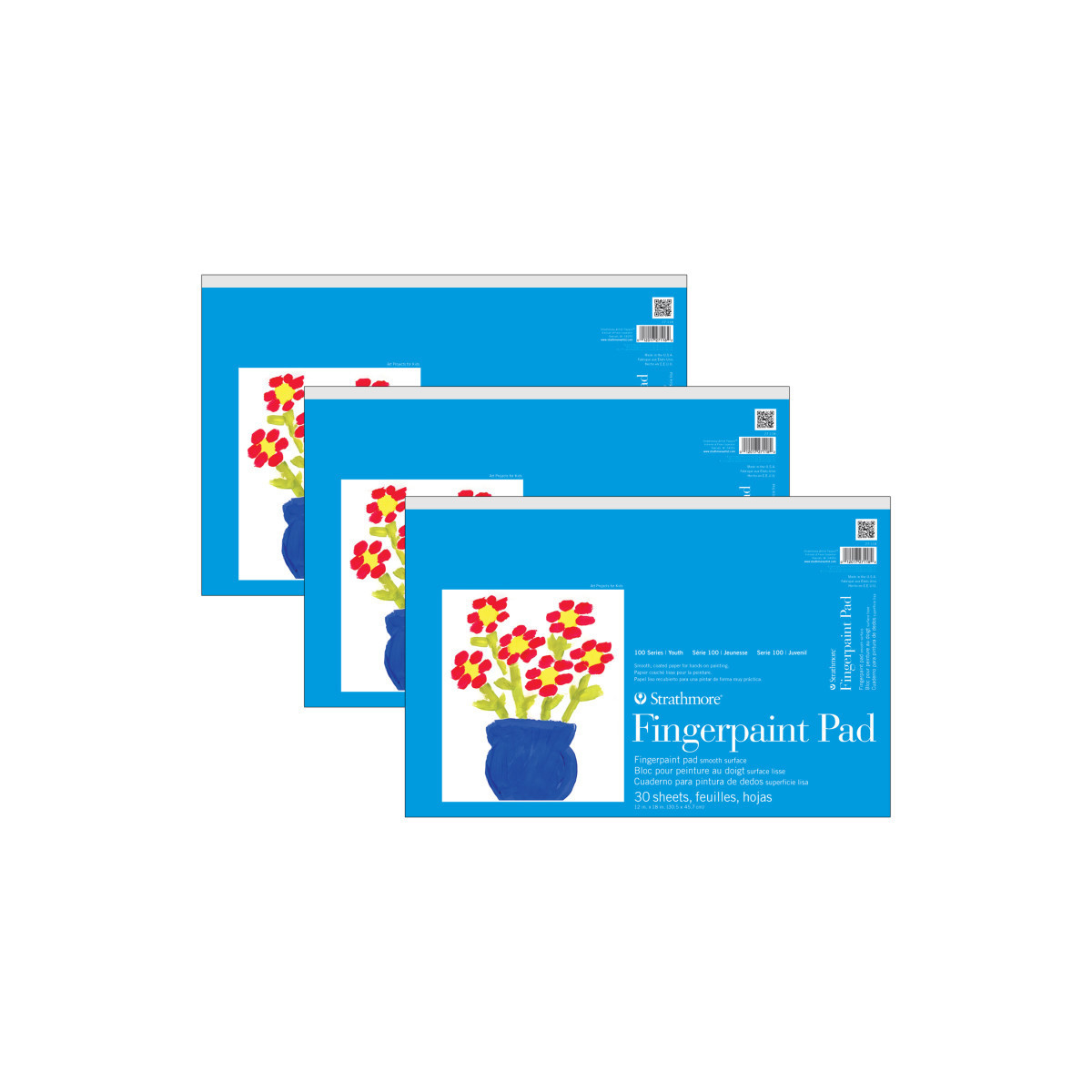 Fingerpaint paper for art class, daycare, craft nights & home school! Teach your kids the basics of painting with a smooth, coated surface made specifically for hands-on painting. Explore the creative process with imaginative projects, investigate how a child sees the world around them & lay the ground work of shapes, color & proportions. The history of Strathmore Paper Company began on St. Patrick's Day in 1892 when its founder, Horace Moses, opened the Mittineague Paper Mill in West Springfield, MA. Strathmore has been a leading supplier of fine art papers for 130 years & founded with the belief that better paper makes better art. Strathmore provides artists of all levels with one of the widest ranges of quality surfaces for producing beautiful works of art, no matter the choice of medium. Listening to the needs of artists & providing inspiration, education, & innovating new products is at the core of what matters to Strathmore. Strathmore Paper Made for Kids! The 100 Series was created to nurture talent & ignite a lifelong love of art by providing artist quality materials at a young age. Designed for ages 5 & up, the paper types & features have been selected to enhance the creative process. Inspirational project ideas are included on the inside front cover of specially marked items. Sold as a pack of 3.