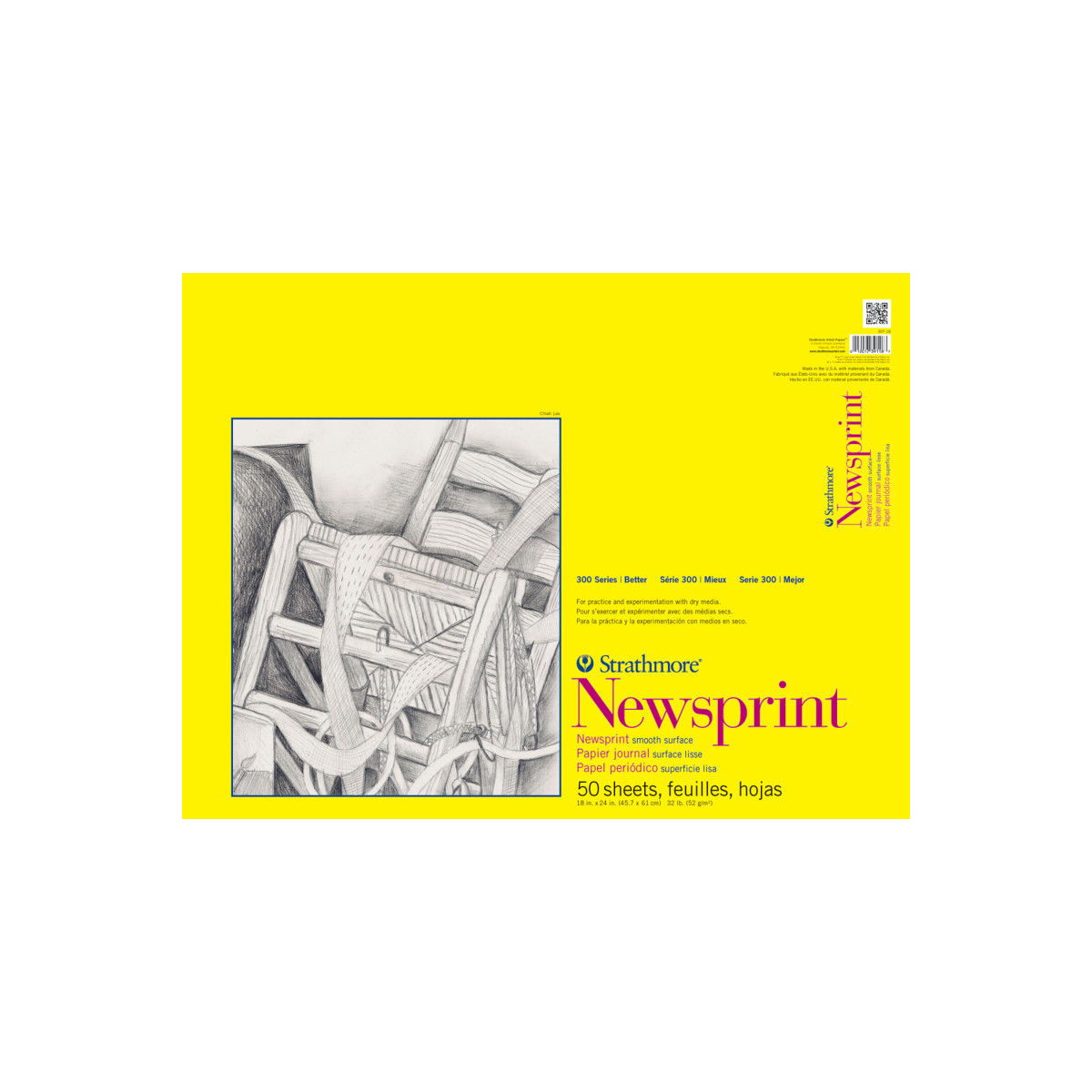 The Strathmore 300 Series Newsprint Pad contains a rough natural-toned newsprint paper for sketching & preliminary drawing. This pad is perfect for gesture sketching in graphite, charcoal, colored pencil, or sketching sticks & is a great way to hone your artistic skills. Providing you with an easy way to track your progress over time. The history of Strathmore Paper Company began on St. Patrick's Day in 1892 when its founder, Horace Moses, opened the Mittineague Paper Mill in West Springfield, MA. Strathmore has been a leading supplier of fine art papers for 130 years & founded with the belief that better paper makes better art. Strathmore provides artists of all levels with one of the widest ranges of quality surfaces for producing beautiful works of art, no matter the choice of medium. Listening to the needs of artists & providing inspiration, education, & innovating new products is at the core of what matters to Strathmore. The Strathmore 300 Series provides art students & intermediate hobbyists a range of better quality paper for quick studies, technical practice & final pieces in art class or at home. Including a wide variety of surface types, artists working with watercolor paint, acrylic paint, oil paint, pastel, colored pencil, charcoal, marker, pen, ink & more have a curated pad customized for their needs. Trusted by art teachers & affordable for parents & students, the 300 Series is the best way to help build confidence in intermediate artists!
