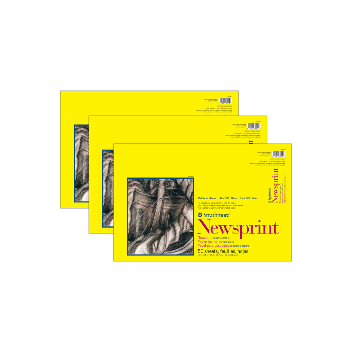 The Strathmore 300 Series Newsprint Pad contains a rough natural-toned newsprint paper for sketching & preliminary drawing. This pad is perfect for gesture sketching in graphite, charcoal, colored pencil, or sketching sticks & is a great way to hone your artistic skills. Providing you with an easy way to track your progress over time. The history of Strathmore Paper Company began on St. Patrick's Day in 1892 when its founder, Horace Moses, opened the Mittineague Paper Mill in West Springfield, MA. Strathmore has been a leading supplier of fine art papers for 130 years & founded with the belief that better paper makes better art. Strathmore provides artists of all levels with one of the widest ranges of quality surfaces for producing beautiful works of art, no matter the choice of medium. Listening to the needs of artists & providing inspiration, education, & innovating new products is at the core of what matters to Strathmore. The Strathmore 300 Series provides art students & intermediate hobbyists a range of better quality paper for quick studies, technical practice & final pieces in art class or at home. Including a wide variety of surface types, artists working with watercolor paint, acrylic paint, oil paint, pastel, colored pencil, charcoal, marker, pen, ink & more have a curated pad customized for their needs. Trusted by art teachers & affordable for parents & students, the 300 Series is the best way to help build confidence in intermediate artists! Sold as a pack of 3.