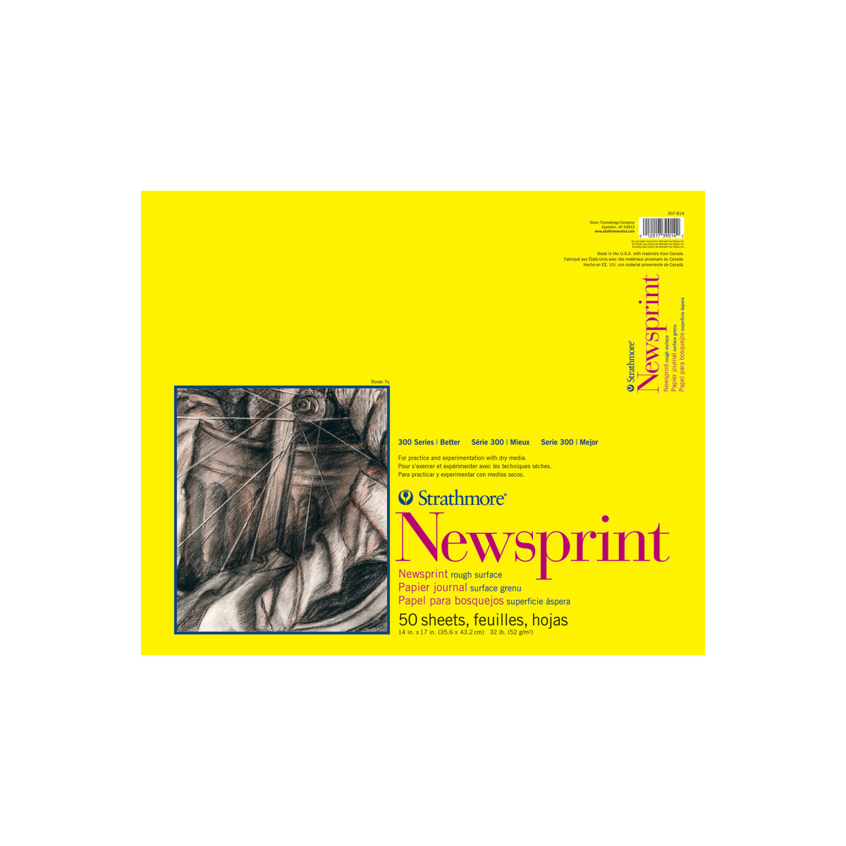 The Strathmore 300 Series Newsprint Pad contains a rough natural-toned newsprint paper for sketching & preliminary drawing. This pad is perfect for gesture sketching in graphite, charcoal, colored pencil, or sketching sticks & is a great way to hone your artistic skills. Providing you with an easy way to track your progress over time. The history of Strathmore Paper Company began on St. Patrick's Day in 1892 when its founder, Horace Moses, opened the Mittineague Paper Mill in West Springfield, MA. Strathmore has been a leading supplier of fine art papers for 130 years & founded with the belief that better paper makes better art. Strathmore provides artists of all levels with one of the widest ranges of quality surfaces for producing beautiful works of art, no matter the choice of medium. Listening to the needs of artists & providing inspiration, education, & innovating new products is at the core of what matters to Strathmore. The Strathmore 300 Series provides art students & intermediate hobbyists a range of better quality paper for quick studies, technical practice & final pieces in art class or at home. Including a wide variety of surface types, artists working with watercolor paint, acrylic paint, oil paint, pastel, colored pencil, charcoal, marker, pen, ink & more have a curated pad customized for their needs. Trusted by art teachers & affordable for parents & students, the 300 Series is the best way to help build confidence in intermediate artists!