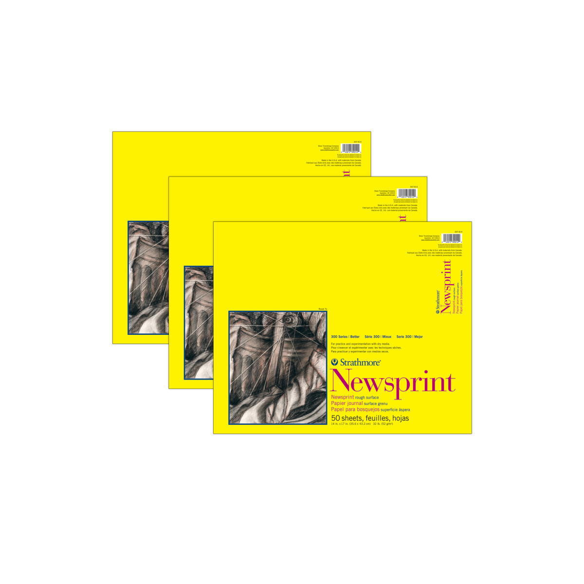 The Strathmore 300 Series Newsprint Pad contains a rough natural-toned newsprint paper for sketching & preliminary drawing. This pad is perfect for gesture sketching in graphite, charcoal, colored pencil, or sketching sticks & is a great way to hone your artistic skills. Providing you with an easy way to track your progress over time. The history of Strathmore Paper Company began on St. Patrick's Day in 1892 when its founder, Horace Moses, opened the Mittineague Paper Mill in West Springfield, MA. Strathmore has been a leading supplier of fine art papers for 130 years & founded with the belief that better paper makes better art. Strathmore provides artists of all levels with one of the widest ranges of quality surfaces for producing beautiful works of art, no matter the choice of medium. Listening to the needs of artists & providing inspiration, education, & innovating new products is at the core of what matters to Strathmore. The Strathmore 300 Series provides art students & intermediate hobbyists a range of better quality paper for quick studies, technical practice & final pieces in art class or at home. Including a wide variety of surface types, artists working with watercolor paint, acrylic paint, oil paint, pastel, colored pencil, charcoal, marker, pen, ink & more have a curated pad customized for their needs. Trusted by art teachers & affordable for parents & students, the 300 Series is the best way to help build confidence in intermediate artists! Sold as a pack of 3.