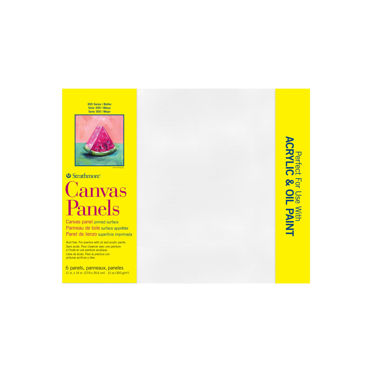 Introducing the 300 Series Canvas Panels from Strathmore—the ideal painting surface for artists of all skill levels. Made from 100% cotton triple primed canvas, this surface can withstand heavy applications like collage, impasto, screen printing, & paint pouring. Available as a traditional canvas, gallery canvas, canvas panels & in an innovative slim frame canvas that features a panel supported by a thin wood frame for additional strength without the bulk of a traditional canvas. The slim frame provides a modern streamlined look, saving space while making artwork ready to showcase. All canvases are supreme surfaces for acrylic paints, oil paints, water-mixable oil paints, acrylic inks, permanent inks, mixed media, paint pouring, epoxy, spray paint, acrylic markers, texture mediums, stencil work & any other large profile art expression. Apply paint with a brush, wedge, or straight from the tube. Canvas is available from 5x5 inches to 36x48 inches, including the standard sizes 9x12 inches, 11x14 inches, 18x24 inches & 24x30 inches. Explore your creativity today with Strathmore 300 Series Canvas! The history of Strathmore Paper Company began on St. Patrick's Day in 1892 when its founder, Horace Moses, opened the Mittineague Paper Mill in West Springfield, MA. Strathmore has been a leading supplier of fine art papers for 130 years & founded with the belief that better paper makes better art. Strathmore provides artists of all levels with one of the widest ranges of quality surfaces for producing beautiful works of art, no matter the choice of medium. Listening to the needs of artists & providing inspiration, education, & innovating new products is at the core of what matters to Strathmore. The Strathmore 300 Series provides art students & intermediate hobbyists a range of better quality paper for quick studies, technical practice & final pieces in art class or at home. Including a wide variety of surface types, artists working with watercolor paint, acrylic paint, oil paint, pastel, colored pencil, charcoal, marker, pen, ink & more have a curated pad customized for their needs. Trusted by art teachers & affordable for parents & students, the 300 Series is the best way to help build confidence in intermediate artists!