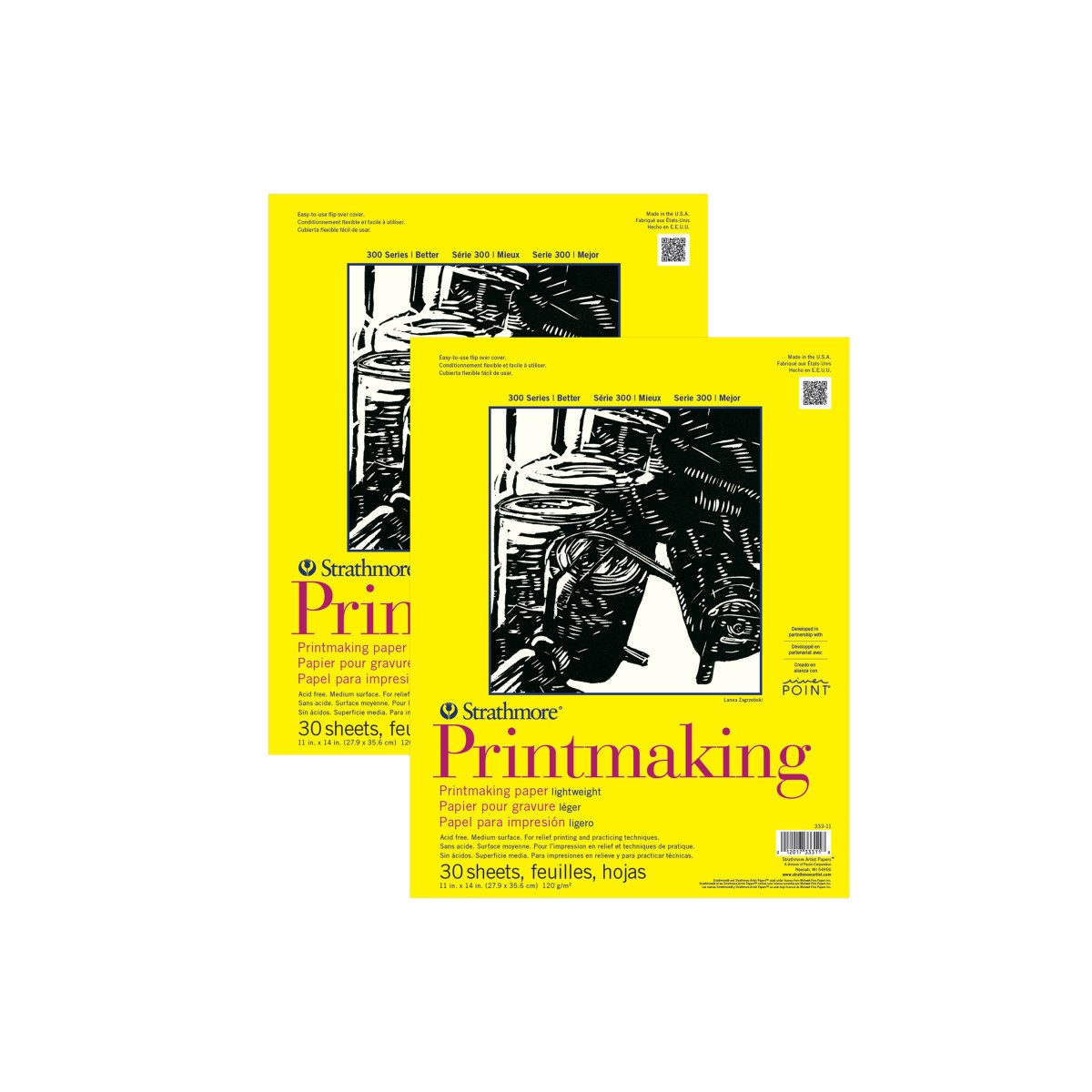 The Strathmore 300 Series Printmaking Pad contains a natural white paper made for printmaking. Ideal for relief printing with block or linocut, screen printing, practicing, & proofing; this paper utilizes a medium-textured surface that is both soft & durable to absorb large amounts of ink. The Strathmore 300 Series Printmaking Pad contains high levels of alpha cellulose wood fiber to improve absorption while making your images pop. The history of Strathmore Paper Company began on St. Patrick's Day in 1892 when its founder, Horace Moses, opened the Mittineague Paper Mill in West Springfield, MA. Strathmore has been a leading supplier of fine art papers for 130 years & founded with the belief that better paper makes better art. Strathmore provides artists of all levels with one of the widest ranges of quality surfaces for producing beautiful works of art, no matter the choice of medium. Listening to the needs of artists & providing inspiration, education, & innovating new products is at the core of what matters to Strathmore. The Strathmore 300 Series provides art students & intermediate hobbyists a range of better quality paper for quick studies, technical practice & final pieces in art class or at home. Including a wide variety of surface types, artists working with watercolor paint, acrylic paint, oil paint, pastel, colored pencil, charcoal, marker, pen, ink & more have a curated pad customized for their needs. Trusted by art teachers & affordable for parents & students, the 300 Series is the best way to help build confidence in intermediate artists! Sold as a pack of 2.