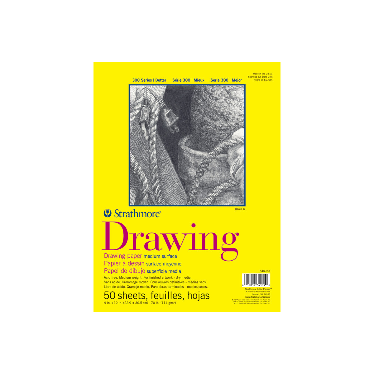 The Strathmore 300 Series Drawing Pad contains a medium weight student grade drawing paper perfect for artists of all levels. With a medium surface finish, this pad offers good erasure with pencil & colored pencil & readily accepts charcoal & sketching sticks. The Strathmore 300 Series Drawing Pad is also rated good for marker, mixed media, soft pastel, & oil pastel. The history of Strathmore Paper Company began on St. Patrick's Day in 1892 when its founder, Horace Moses, opened the Mittineague Paper Mill in West Springfield, MA. Strathmore has been a leading supplier of fine art papers for 130 years & founded with the belief that better paper makes better art. Strathmore provides artists of all levels with one of the widest ranges of quality surfaces for producing beautiful works of art, no matter the choice of medium. Listening to the needs of artists & providing inspiration, education, & innovating new products is at the core of what matters to Strathmore. The Strathmore 300 Series provides art students & intermediate hobbyists a range of better quality paper for quick studies, technical practice & final pieces in art class or at home. Including a wide variety of surface types, artists working with watercolor paint, acrylic paint, oil paint, pastel, colored pencil, charcoal, marker, pen, ink & more have a curated pad customized for their needs. Trusted by art teachers & affordable for parents & students, the 300 Series is the best way to help build confidence in intermediate artists!