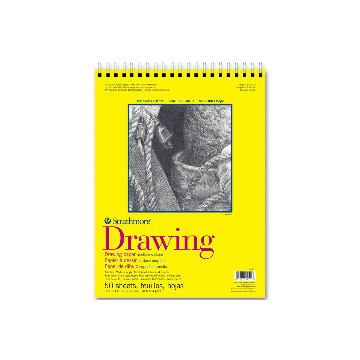 The Strathmore 300 Series Drawing Pad contains a medium weight student grade drawing paper perfect for artists of all levels. With a medium surface finish, this pad offers good erasure with pencil & colored pencil & readily accepts charcoal & sketching sticks. The Strathmore 300 Series Drawing Pad is also rated good for marker, mixed media, soft pastel, & oil pastel. The history of Strathmore Paper Company began on St. Patrick's Day in 1892 when its founder, Horace Moses, opened the Mittineague Paper Mill in West Springfield, MA. Strathmore has been a leading supplier of fine art papers for 130 years & founded with the belief that better paper makes better art. Strathmore provides artists of all levels with one of the widest ranges of quality surfaces for producing beautiful works of art, no matter the choice of medium. Listening to the needs of artists & providing inspiration, education, & innovating new products is at the core of what matters to Strathmore. The Strathmore 300 Series provides art students & intermediate hobbyists a range of better quality paper for quick studies, technical practice & final pieces in art class or at home. Including a wide variety of surface types, artists working with watercolor paint, acrylic paint, oil paint, pastel, colored pencil, charcoal, marker, pen, ink & more have a curated pad customized for their needs. Trusted by art teachers & affordable for parents & students, the 300 Series is the best way to help build confidence in intermediate artists!