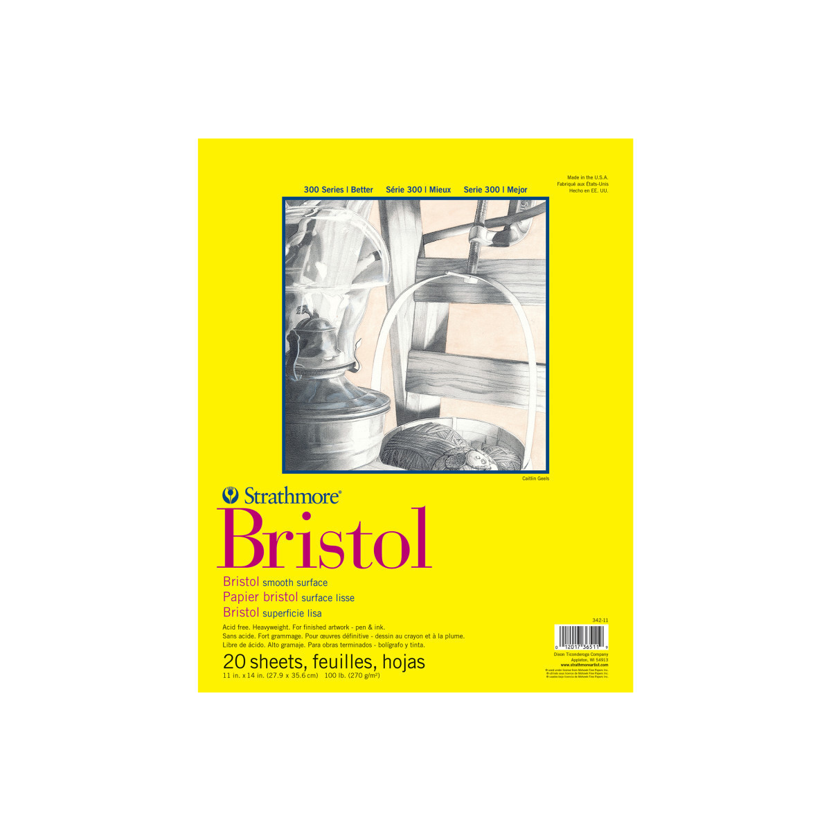 Bristol generally describes a heavyweight drawing paper. Bristol sheets provide a stiff, strong surface to work on without the need for mounting. The term Bristol derives from the early days of European papermaking when mills would send their finest papers to Bristol, England to be pasted together to form heavyweight drawing sheets. Our 300 Series Bristol paper is a popular choice among many artists because of the quality paper at a very reasonable price. It comes in a number of pad sizes, loose sheets, & large rolls. It is a 'bristol weight' at 100lb. (270gsm), & is perfect for finished art. Look for it in smooth & vellum surfaces. The history of Strathmore Paper Company began on St. Patrick's Day in 1892 when its founder, Horace Moses, opened the Mittineague Paper Mill in West Springfield, MA. Strathmore has been a leading supplier of fine art papers for 130 years & founded with the belief that better paper makes better art. Strathmore provides artists of all levels with one of the widest ranges of quality surfaces for producing beautiful works of art, no matter the choice of medium. Listening to the needs of artists & providing inspiration, education, & innovating new products is at the core of what matters to Strathmore. The Strathmore 300 Series provides art students & intermediate hobbyists a range of better quality paper for quick studies, technical practice & final pieces in art class or at home. Including a wide variety of surface types, artists working with watercolor paint, acrylic paint, oil paint, pastel, colored pencil, charcoal, marker, pen, ink & more have a curated pad customized for their needs. Trusted by art teachers & affordable for parents & students, the 300 Series is the best way to help build confidence in intermediate artists!