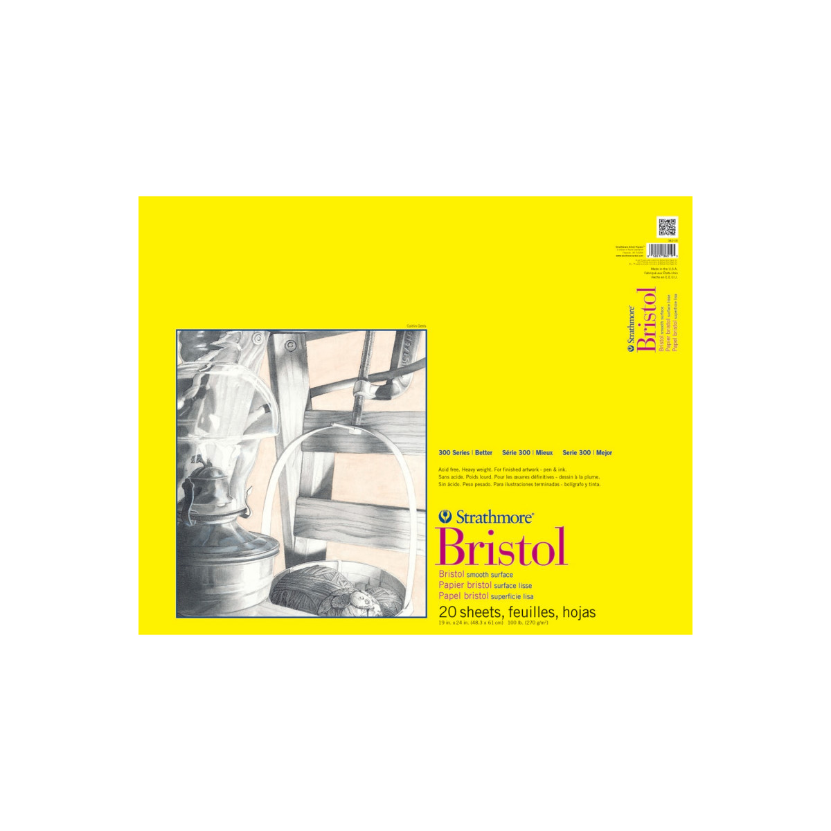 Bristol generally describes a heavyweight drawing paper. Bristol sheets provide a stiff, strong surface to work on without the need for mounting. The term Bristol derives from the early days of European papermaking when mills would send their finest papers to Bristol, England to be pasted together to form heavyweight drawing sheets. Our 300 Series Bristol paper is a popular choice among many artists because of the quality paper at a very reasonable price. It comes in a number of pad sizes, loose sheets, & large rolls. It is a 'bristol weight' at 100lb. (270gsm), & is perfect for finished art. Look for it in smooth & vellum surfaces. The history of Strathmore Paper Company began on St. Patrick's Day in 1892 when its founder, Horace Moses, opened the Mittineague Paper Mill in West Springfield, MA. Strathmore has been a leading supplier of fine art papers for 130 years & founded with the belief that better paper makes better art. Strathmore provides artists of all levels with one of the widest ranges of quality surfaces for producing beautiful works of art, no matter the choice of medium. Listening to the needs of artists & providing inspiration, education, & innovating new products is at the core of what matters to Strathmore. The Strathmore 300 Series provides art students & intermediate hobbyists a range of better quality paper for quick studies, technical practice & final pieces in art class or at home. Including a wide variety of surface types, artists working with watercolor paint, acrylic paint, oil paint, pastel, colored pencil, charcoal, marker, pen, ink & more have a curated pad customized for their needs. Trusted by art teachers & affordable for parents & students, the 300 Series is the best way to help build confidence in intermediate artists!