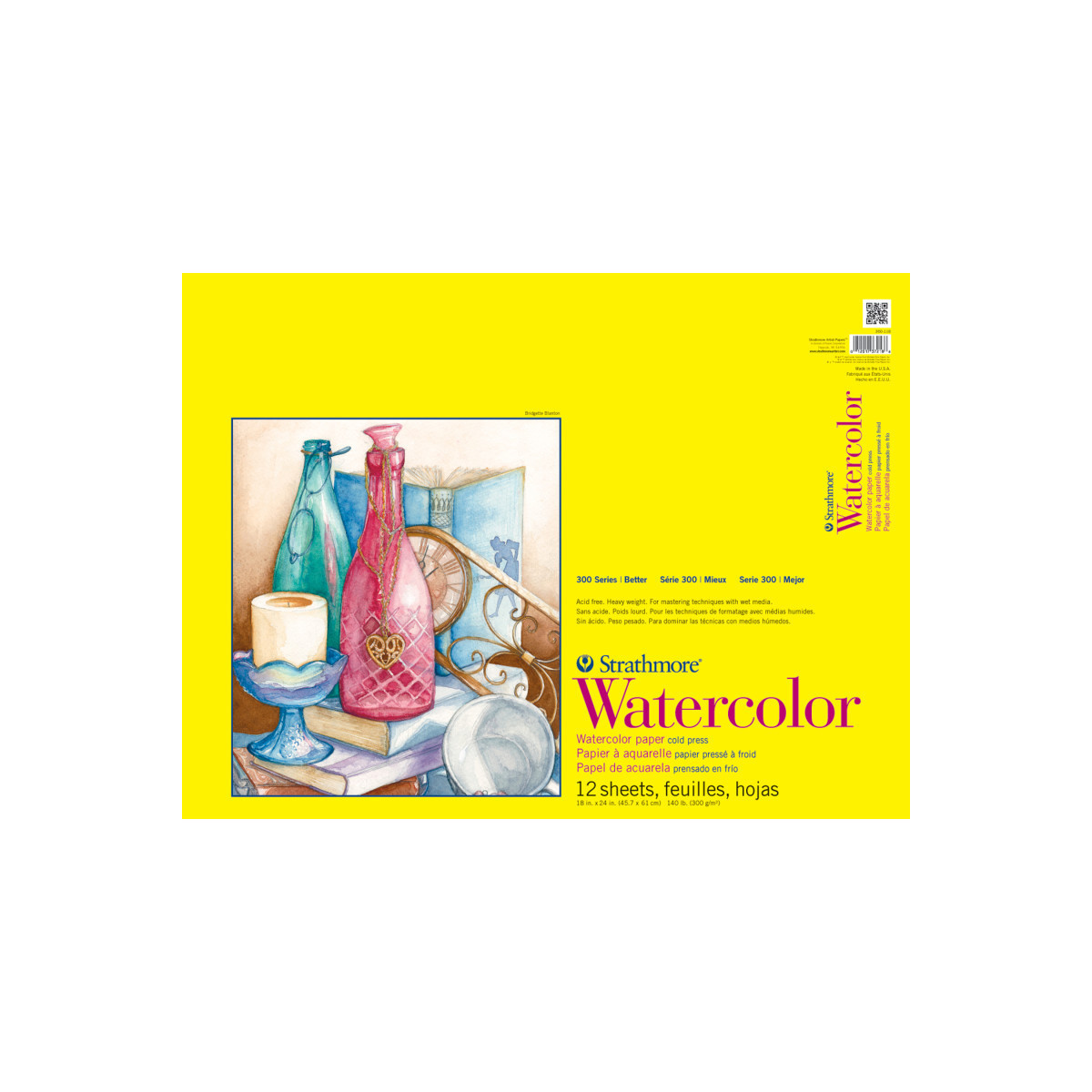 The Strathmore 300 Series Watercolor Pad contains a heavyweight, student grade, watercolor paper. Best suited for experimenting & practicing techniques when heavier washes & reworks are required. This paper has two distinct finishes: a popular cold press on top for most watercolor work & on the other side a smooth finish ideal for detail work. The Strathmore 300 Series Watercolor Pad is perfect for water-based media including watercolor, tempera, acrylic, gouache, & poster paint. The history of Strathmore Paper Company began on St. Patrick's Day in 1892 when its founder, Horace Moses, opened the Mittineague Paper Mill in West Springfield, MA. Strathmore has been a leading supplier of fine art papers for 130 years & founded with the belief that better paper makes better art. Strathmore provides artists of all levels with one of the widest ranges of quality surfaces for producing beautiful works of art, no matter the choice of medium. Listening to the needs of artists & providing inspiration, education, & innovating new products is at the core of what matters to Strathmore. The Strathmore 300 Series provides art students & intermediate hobbyists a range of better quality paper for quick studies, technical practice & final pieces in art class or at home. Including a wide variety of surface types, artists working with watercolor paint, acrylic paint, oil paint, pastel, colored pencil, charcoal, marker, pen, ink & more have a curated pad customized for their needs. Trusted by art teachers & affordable for parents & students, the 300 Series is the best way to help build confidence in intermediate artists!