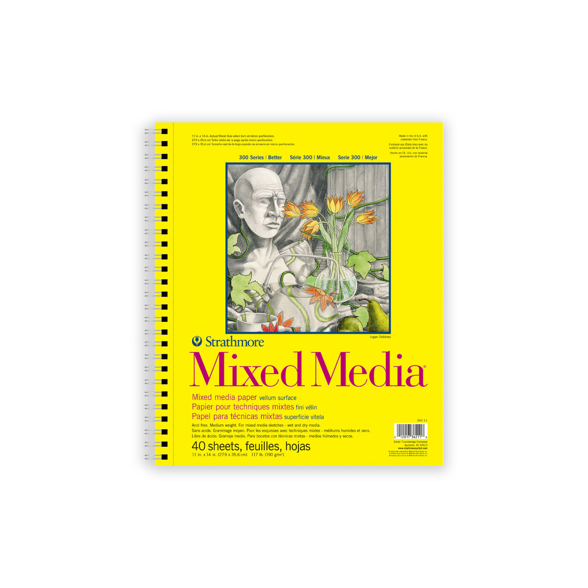 The Strathmore 300 Series Mixed Media Pad contains a medium weight paper in a sketching format perfect for mixed media sketches, practice of techniques, & quick studies. Ideal for graphite, colored pencil, sketching sticks, pen, ink, pastels, markers, collage; The Strathmore 300 Series Mixed Media Pad can also be used for light washes in watercolor or gouache to help bring your creations to life. The history of Strathmore Paper Company began on St. Patrick's Day in 1892 when its founder, Horace Moses, opened the Mittineague Paper Mill in West Springfield, MA. Strathmore has been a leading supplier of fine art papers for 130 years & founded with the belief that better paper makes better art. Strathmore provides artists of all levels with one of the widest ranges of quality surfaces for producing beautiful works of art, no matter the choice of medium. Listening to the needs of artists & providing inspiration, education, & innovating new products is at the core of what matters to Strathmore. The Strathmore 300 Series provides art students & intermediate hobbyists a range of better quality paper for quick studies, technical practice & final pieces in art class or at home. Including a wide variety of surface types, artists working with watercolor paint, acrylic paint, oil paint, pastel, colored pencil, charcoal, marker, pen, ink & more have a curated pad customized for their needs. Trusted by art teachers & affordable for parents & students, the 300 Series is the best way to help build confidence in intermediate artists!