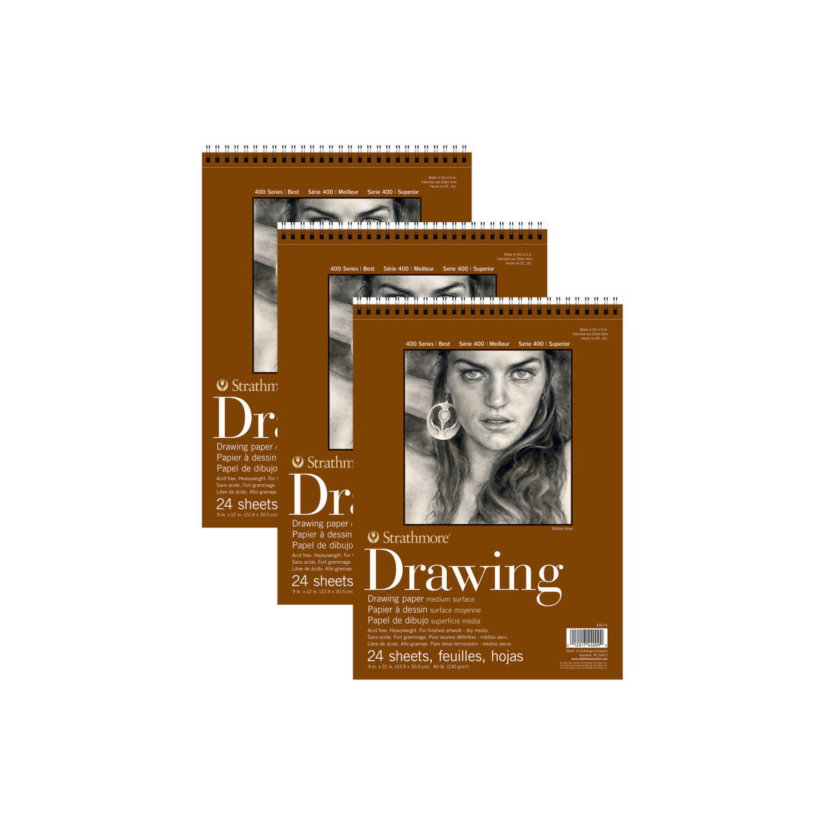 Introducing the Strathmore 400 Series Drawing Paper—a professional-level drawing paper ideal for creating crisp, detailed masterpieces with ease. Its smooth, sturdy surface is a dream for any medium, whether you're sketching with graphite or inking bold lines, & it keeps your work free from annoying smudges or tears. Plus, it's acid-free, so your creations stay vibrant & timeless, ensuring they look as stunning years from now as they do today. The history of Strathmore Paper Company began on St. Patrick's Day in 1892 when its founder, Horace Moses, opened the Mittineague Paper Mill in West Springfield, MA. Strathmore has been a leading supplier of fine art papers for 130 years & founded with the belief that better paper makes better art. Strathmore provides artists of all levels with one of the widest ranges of quality surfaces for producing beautiful works of art, no matter the choice of medium. Listening to the needs of artists & providing inspiration, education, & innovating new products is at the core of what matters to Strathmore. The Strathmore 400 Series, easily recognized by its iconic brown cover, has been a staple in the hands of art students & professional artists. Known for its dependable quality & time-tested durability, this series of art paper provides high school art students, college art students, dedicated hobbyists & career artists a range of surfaces from practice to final pieces. Artists working with watercolor paint, acrylic paint, oil paint, pastel, colored pencil, charcoal, marker, pen, ink & more have a curated pad customized for their needs. Confidently create showcase-worthy pieces for galleries, competitions & online market places with this beloved brand! Sold as a pack of 3.