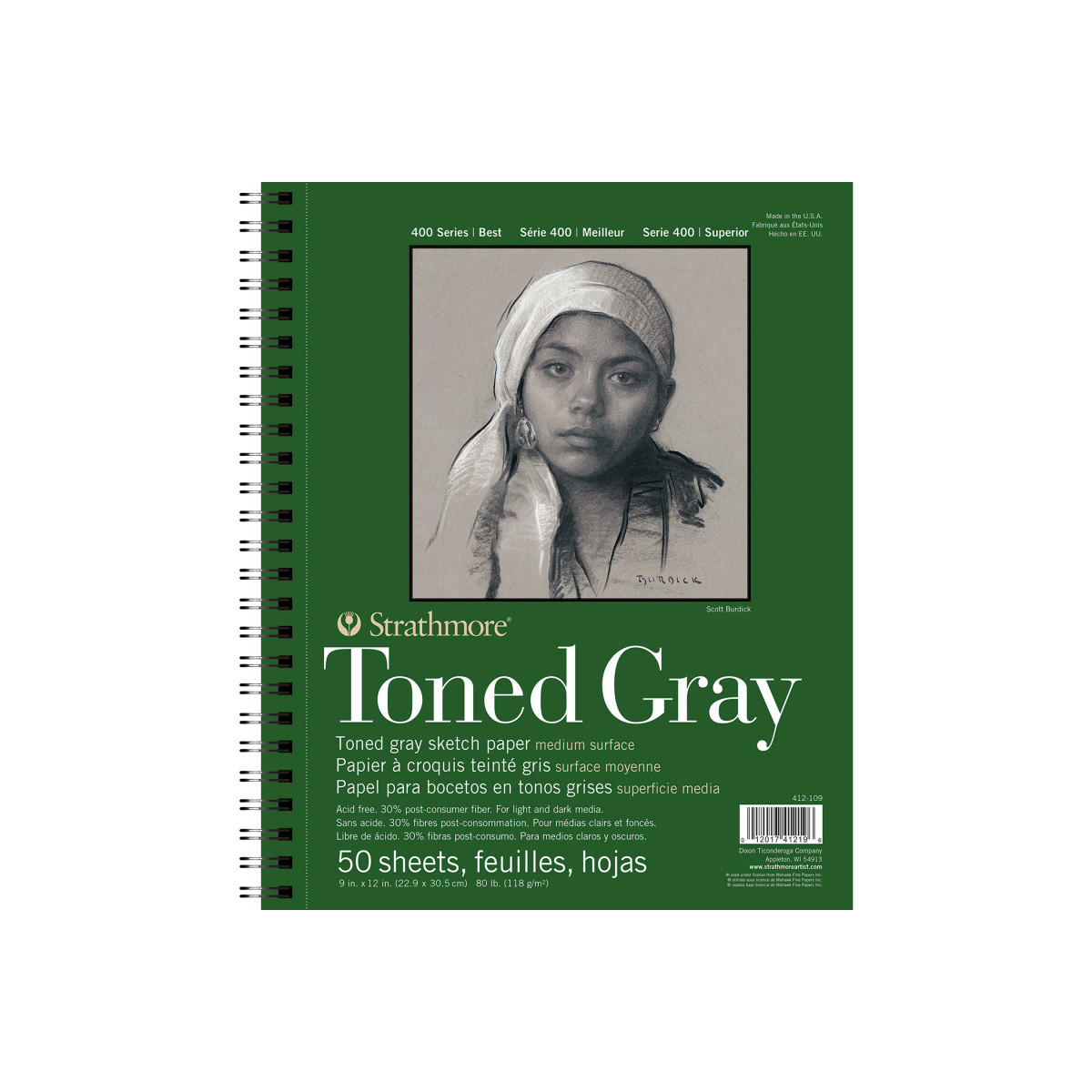 Introducing Strathmore 400 Series Toned Sketch Paper—a professional-level drawing surface made from 100% recycled & 30% post-consumer fiber, as well as kraft & bark fiber inclusions for visual interest. Ideal for light & dark media including graphite, chalk, charcoal, sketching stick, markers, china markers, colored pencils, pens, & white gel pens. The history of Strathmore Paper Company began on St. Patrick's Day in 1892 when its founder, Horace Moses, opened the Mittineague Paper Mill in West Springfield, MA. Strathmore has been a leading supplier of fine art papers for 130 years & founded with the belief that better paper makes better art. Strathmore provides artists of all levels with one of the widest ranges of quality surfaces for producing beautiful works of art, no matter the choice of medium. Listening to the needs of artists & providing inspiration, education, & innovating new products is at the core of what matters to Strathmore. The Strathmore 400 Series, easily recognized by its iconic brown cover, has been a staple in the hands of art students & professional artists. Known for its dependable quality & time-tested durability, this series of art paper provides high school art students, college art students, dedicated hobbyists & career artists a range of surfaces from practice to final pieces. Artists working with watercolor paint, acrylic paint, oil paint, pastel, colored pencil, charcoal, marker, pen, ink & more have a curated pad customized for their needs. Confidently create showcase-worthy pieces for galleries, competitions & online market places with this beloved brand!