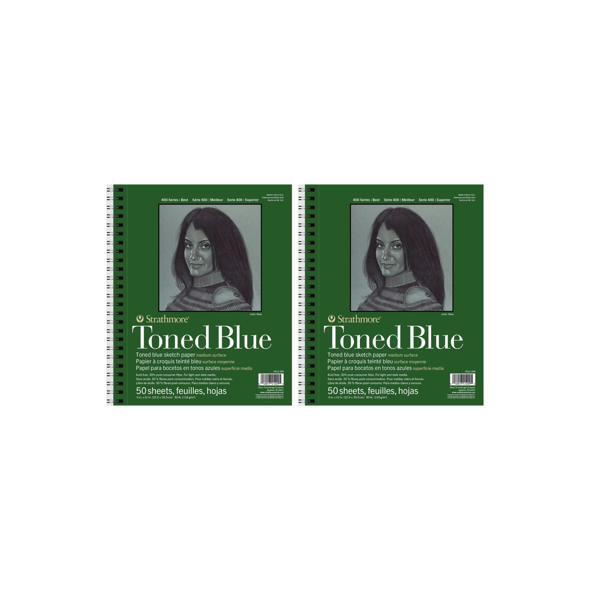 Strathmore 400 Series Sketch Pad, Recycled, Toned Blue, Side Wire Binding, 50 Sheet, 9x12 inch, Pack of 2