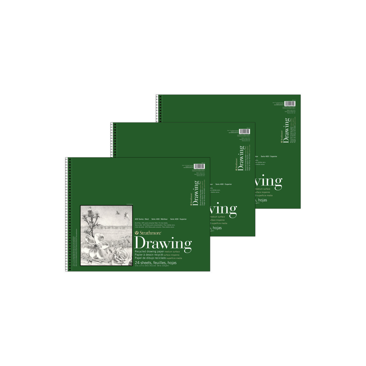 Strathmore 400 Series Drawing Pad, Recycled, Top Wire Binding, 24 Sheet, 14x17 inch, Pack of 3