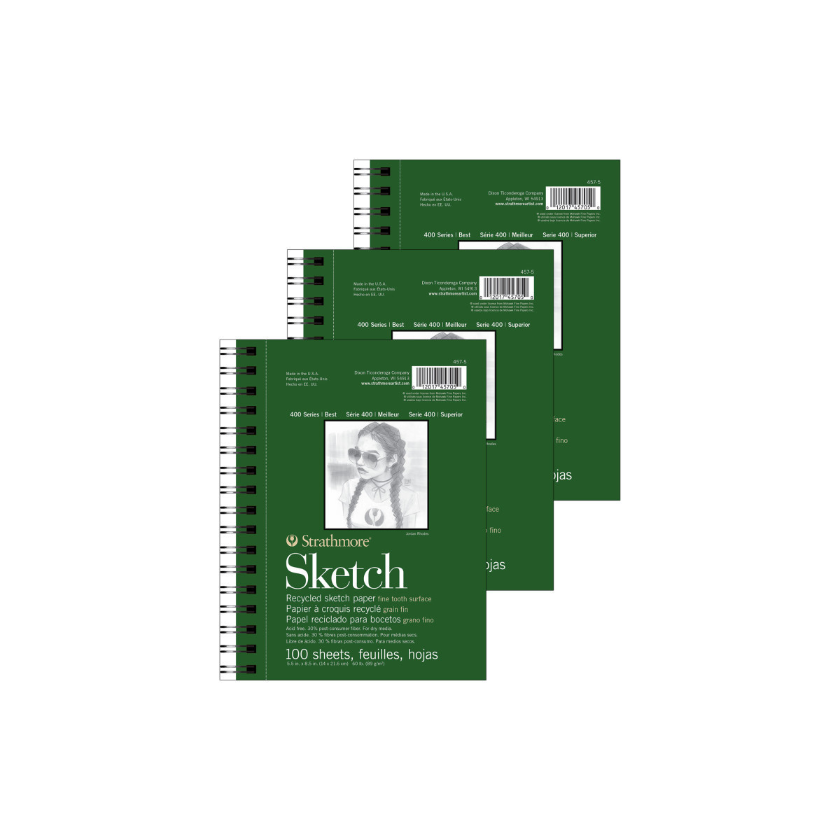 Strathmore 400 Series Sketch Pad, Recycled, Side Wire Binding, 100 Sheet, 5.5x8.5 inch, Pack of 3