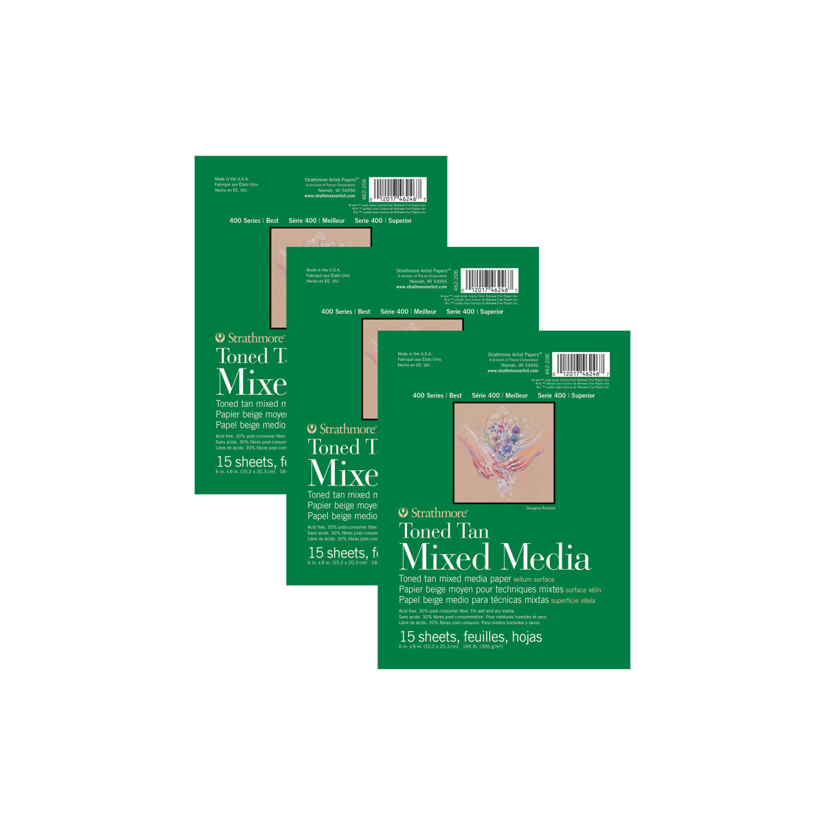 Introducing the Strathmore 400 Series Mixed Media Paper—a versatile surface for professional artists, ready to handle whatever your creativity throws at it. By combining the characteristics of watercolor paper with the finish of a drawing sheet, we've created the ultimate paper for artists to confidently explore watercolor washes, ink lines, & layers of pastel or colored pencil without fear of warping or tearing. Freely create richly dynamic pieces that truly stand out. The history of Strathmore Paper Company began on St. Patrick's Day in 1892 when its founder, Horace Moses, opened the Mittineague Paper Mill in West Springfield, MA. Strathmore has been a leading supplier of fine art papers for 130 years & founded with the belief that better paper makes better art. Strathmore provides artists of all levels with one of the widest ranges of quality surfaces for producing beautiful works of art, no matter the choice of medium. Listening to the needs of artists & providing inspiration, education, & innovating new products is at the core of what matters to Strathmore. The Strathmore 400 Series, easily recognized by its iconic brown cover, has been a staple in the hands of art students & professional artists. Known for its dependable quality & time-tested durability, this series of art paper provides high school art students, college art students, dedicated hobbyists & career artists a range of surfaces from practice to final pieces. Artists working with watercolor paint, acrylic paint, oil paint, pastel, colored pencil, charcoal, marker, pen, ink & more have a curated pad customized for their needs. Confidently create showcase-worthy pieces for galleries, competitions & online market places with this beloved brand! Sold as a pack of 3.