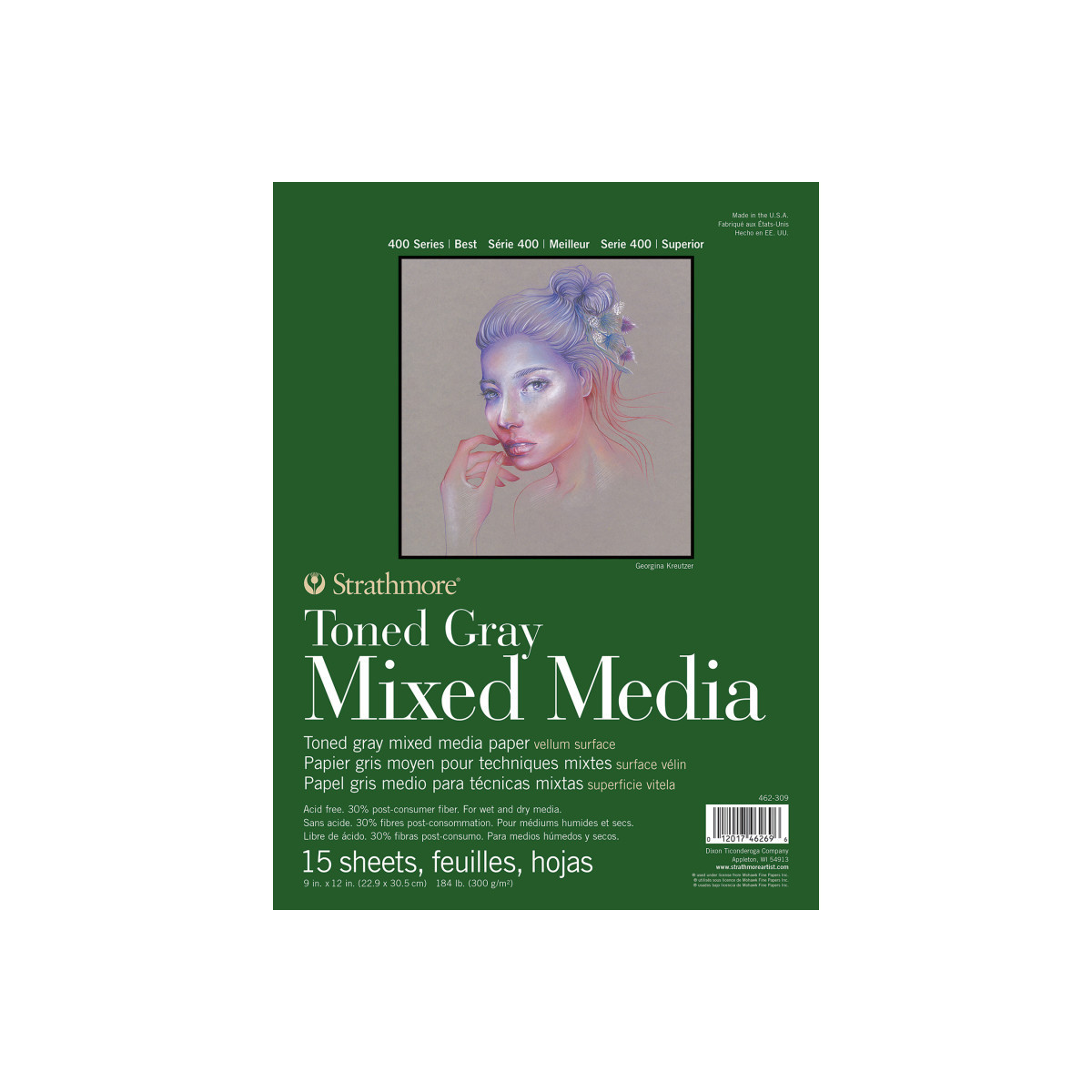 Strathmore 400 Series Mixed Media Pad, Toned Gray, Glue Binding, 9x12 inch, 15 Sheet, 1 Count