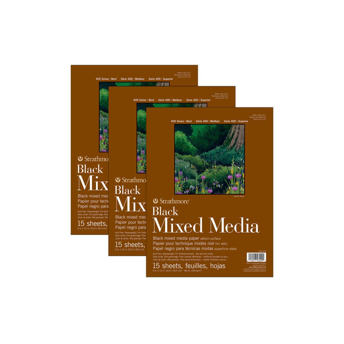 Introducing the Strathmore 400 Series Mixed Media Paper—a versatile surface for professional artists, ready to handle whatever your creativity throws at it. By combining the characteristics of watercolor paper with the finish of a drawing sheet, we've created the ultimate paper for artists to confidently explore watercolor washes, ink lines, & layers of pastel or colored pencil without fear of warping or tearing. Freely create richly dynamic pieces that truly stand out. The history of Strathmore Paper Company began on St. Patrick's Day in 1892 when its founder, Horace Moses, opened the Mittineague Paper Mill in West Springfield, MA. Strathmore has been a leading supplier of fine art papers for 130 years & founded with the belief that better paper makes better art. Strathmore provides artists of all levels with one of the widest ranges of quality surfaces for producing beautiful works of art, no matter the choice of medium. Listening to the needs of artists & providing inspiration, education, & innovating new products is at the core of what matters to Strathmore. The Strathmore 400 Series, easily recognized by its iconic brown cover, has been a staple in the hands of art students & professional artists. Known for its dependable quality & time-tested durability, this series of art paper provides high school art students, college art students, dedicated hobbyists & career artists a range of surfaces from practice to final pieces. Artists working with watercolor paint, acrylic paint, oil paint, pastel, colored pencil, charcoal, marker, pen, ink & more have a curated pad customized for their needs. Confidently create showcase-worthy pieces for galleries, competitions & online market places with this beloved brand! Sold as a pack of 3.