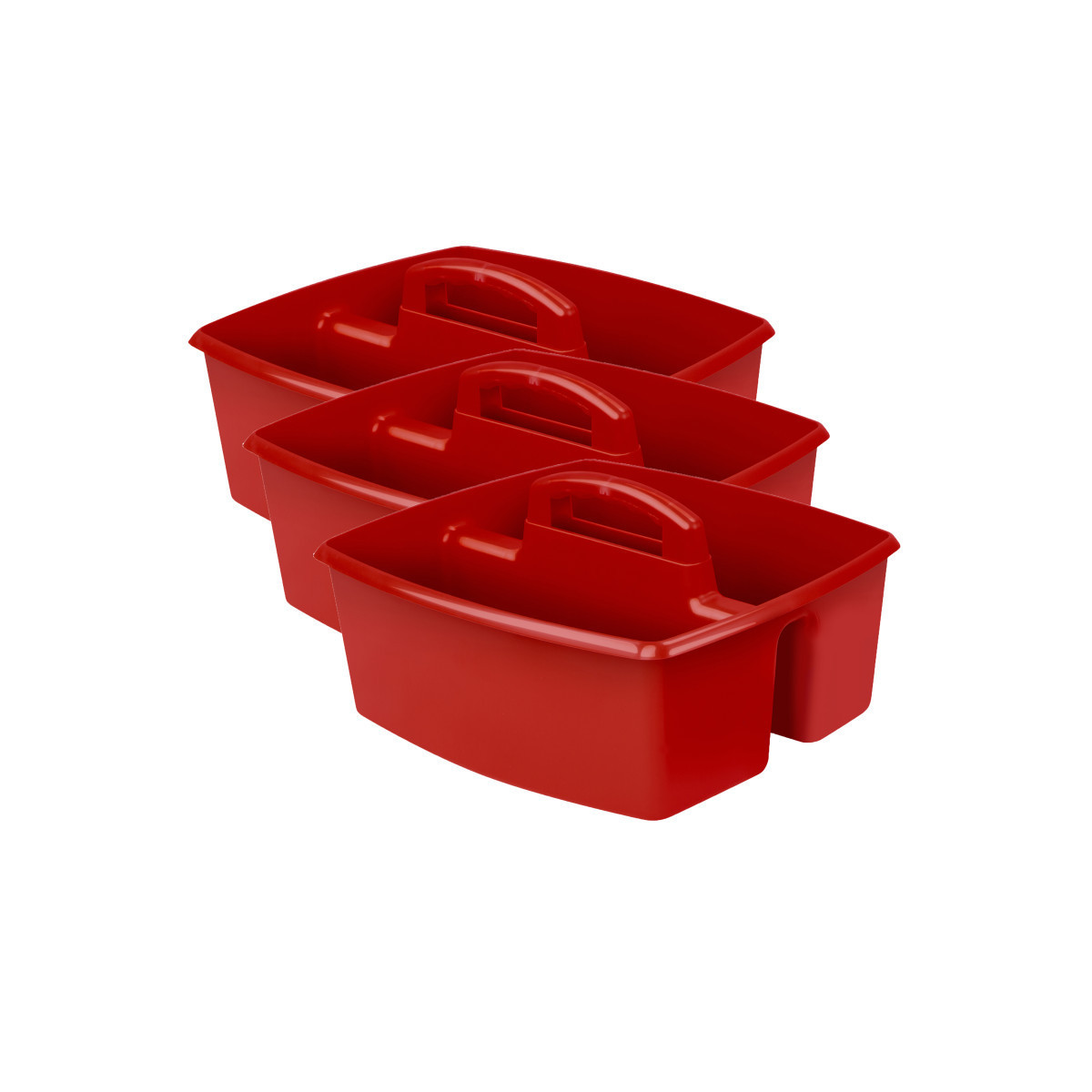 This large caddy has two large compartment to store art supplies, washing accessories, or anything you need to keep handy. Sort your supplies for easy use and storage. The comfort grip, rounded handle has no sharp edges. Completely washable and dishwasher safe. Take your supplies from the closet to the work table quickly and simply. The caddy is made of impact-resistant plastic, and stacks and nests deeply. Caddy measures 13"L x 11"W x 6.375"H. Sold as a pack of 3 caddies.