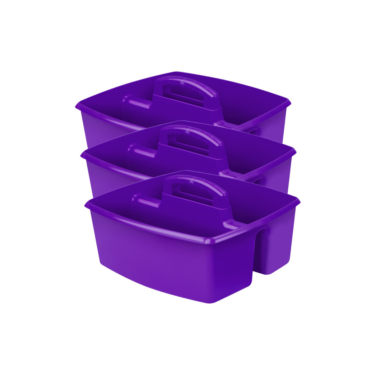 This large caddy has two large compartment to store art supplies, washing accessories, or anything you need to keep handy. Sort your supplies for easy use and storage. The comfort grip, rounded handle has no sharp edges. Completely washable and dishwasher safe. Take your supplies from the closet to the work table quickly and simply. The caddy is made of impact-resistant plastic, and stacks and nests deeply. Caddy measures 13"L x 11"W x 6.375"H. Sold as a pack of 3 caddies.